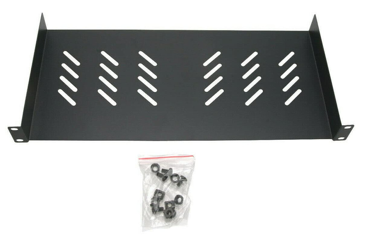 Q: Does the tray have features for airflow and temperature control?A: Yes, the tray features a slotted venting design that promotes maximum airflow, reducing the risk of overheating for your mounted equipment.