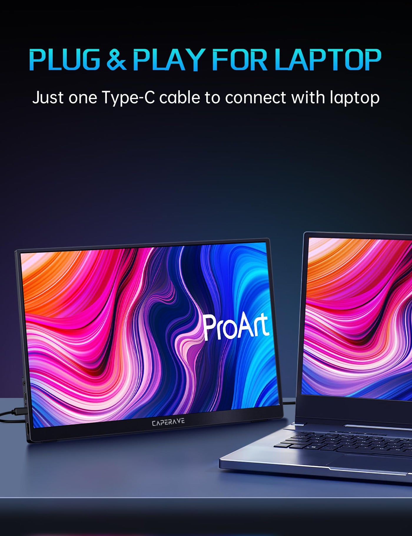 Caperave 17.3-Inch 4K Portable Monitor, Designed For Exceptional Viewing Experiences On-The-Go. With Its Stunning 3840X2160 Uhd Resolution And 100% Adobe Rgb Color Gamut, Every Detail Comes To Life With Vibrant And Accurate Colors. This Monitor Is Versatile And Compatible With Various Devices, Including Products Like Macbook, Ipad, And Iphone, As Well As Computers And Desktops. You Can Easily Set Up The Monitor In A Vertical Or Horizontal Position With Its Built-In Kickstand, Providing Flexibility For Work Or Play. The Hdmi And Usb-C Connectivity Options Make It Easy To Extend Your Screen Or Create A Dual-Monitor Setup. With A Brightness Level Of 500 Nits, You Can Enjoy Excellent Visibility Even In Well-Lit Environments. This Portable Monitor Is Not Only Visually Stunning But Also Lightweight And Ultra-Slim, Making It Perfect For Professionals On-The-Go. The Built-In Speakers Provide Immersive Sound Quality Without The Need For Additional Accessories, And The Monitor Supports Light Sensor Technology For Optimal Viewing Comfort. Upgrade Your Productivity And Entertainment With Our 17.3-Inch 4K Portable Monitor - The Perfect Choice For Anyone Seeking A High-Quality, Versatile Display Solution That Can Keep Up With Their Busy Lifestyle.