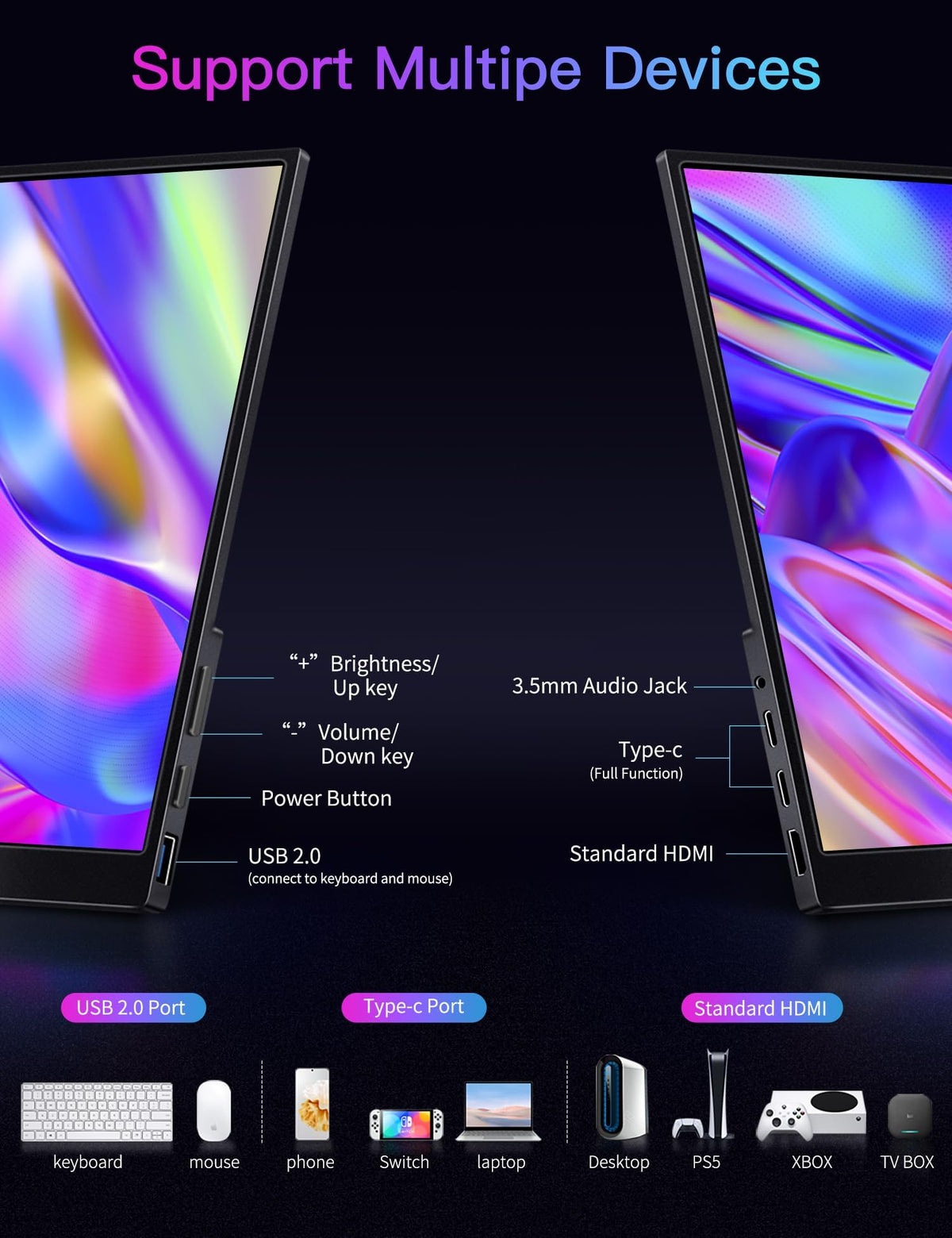 15.6-Inch Portable Monitor - 1080P Fhd Ips Display, External Screen For Laptop/Pc/Phone/Gaming Devices. A Sleek And Slim Marvel With A Sturdy All-Metal Body And An Adjustable Kickstand. Experience Stunning Visuals On The Go, Connect Effortlessly Via Usb Type-C, And Enjoy The Freedom Of Dual-Screen Productivity Wherever You Are. Take Your Work And Entertainment To New Heights With This Slim And Portable Monitor.