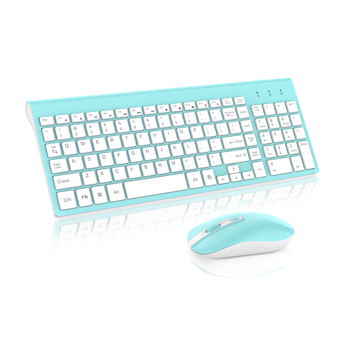Cimetech Wireless Keyboard And Mouse Combo, Compact Full Size Wireless Keyboard And Mouse Set 2.4G Ultra Thin Sleek Design For Windows, Computer, Desktop, Pc, Notebook, Laptop Blue