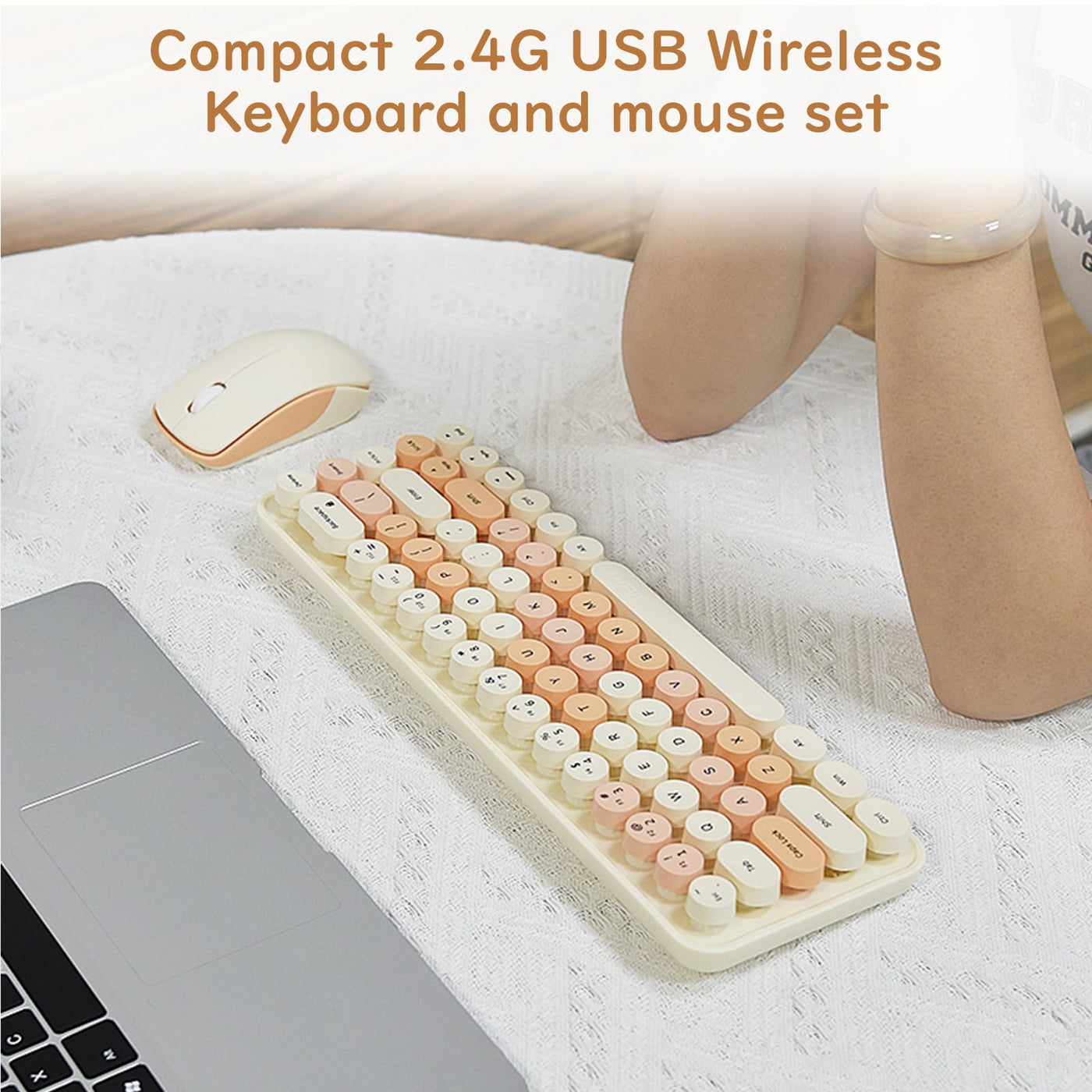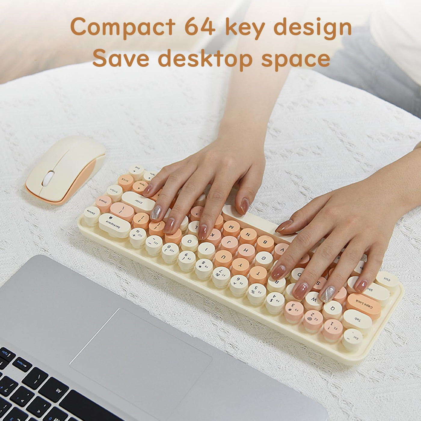 Compact Wireless Keyboard And Mouse Combo, Colorful Round Keycap, Soundless 68 Keys, Suitable For Girls And Kids, Compatible Wit