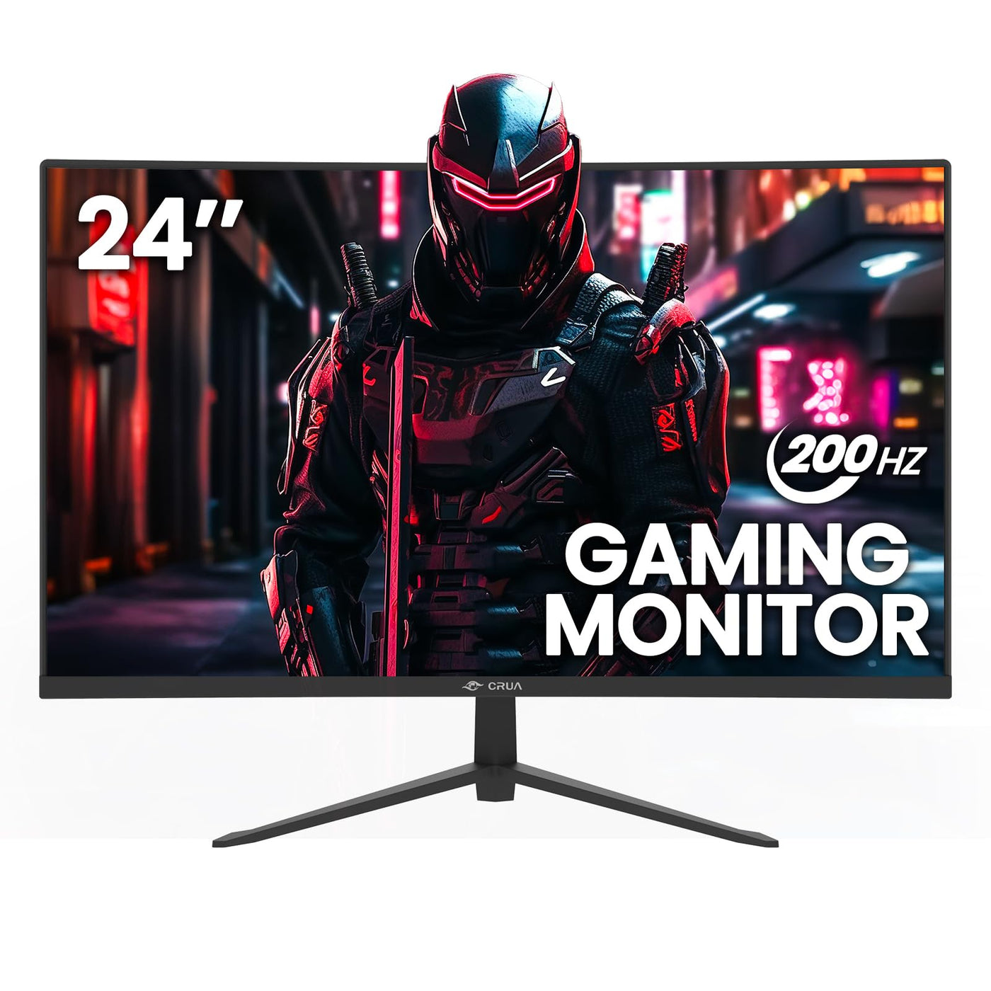 Crua 24 Inch 200Hz/180Hz Curved Gaming Monitor, Fhd 1080P Frameless Computer Monitors, Support Amd Freesync Low Motion Blur, Eye