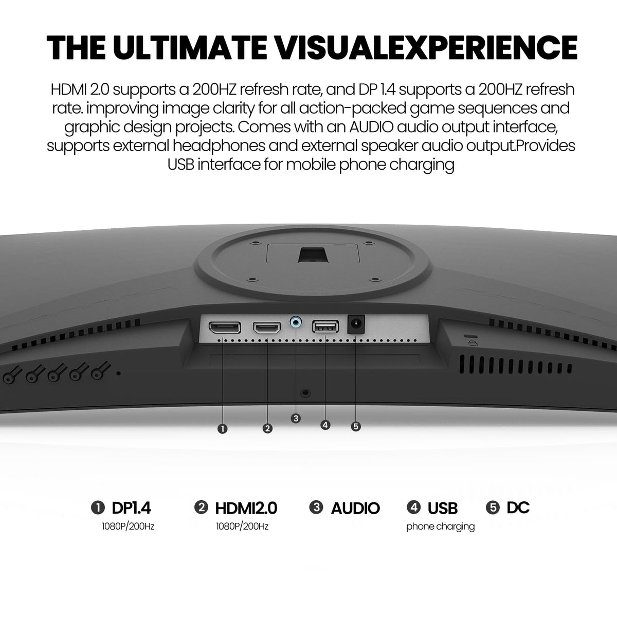 Crua 23.8'' Full Hd (1920X1080) Led Curved Monitor, 200Hz The Monitor Is Not Only Suitable For General Office/Business Monitors&Nbsp;But Also Can Adapt Well To Household Use. The Angle Of The Display Can Be Adjusted. The Monitor Has Bezel-Less And Ultra-Light Sleek Design With A Mental V-Shaped Base, Which Is Both Aesthetics And Practicality. The Monitor Has Freesync Technology, Flicker-Free Technology, And Blue Light Filter, Which Improves Work Efficiency And Brings A Comfortable User Experience. 1. Basic Parameters: Screen Size: 23.8'' Backlight Type: Led Display Type:Va Panel Brightness (Typical): 250 Cd/M Contrast Ratio (Typical): 3000:1 (Typ.) (Tm) Resolution (Ma .): 1920 1080 Response Time (Typical): 2 (Typ.)(Tr+Td) Ms Viewing Angle (Horizontal/Vertical): 89/89/89/89 (Typ.)(Cr=10) Color Support: 16.7Million Colors,8-Bit 2. Interface Hdmi:Hdmi 1.4 1 (Support 120Hz) Dp :Display Port 1.2(Up To Support 200Hz) Type: Dc 12V 2.5A Power Adapter: 12V 3A&Nbsp; 2.0Mm 3. Design Plug &Amp; Play: Supported Bezel Design: 3-Sided Frameless 4.Package Contents: Crua Monitor Hdmi&Nbsp; Dp Cable 1 Power Adapter User Manual