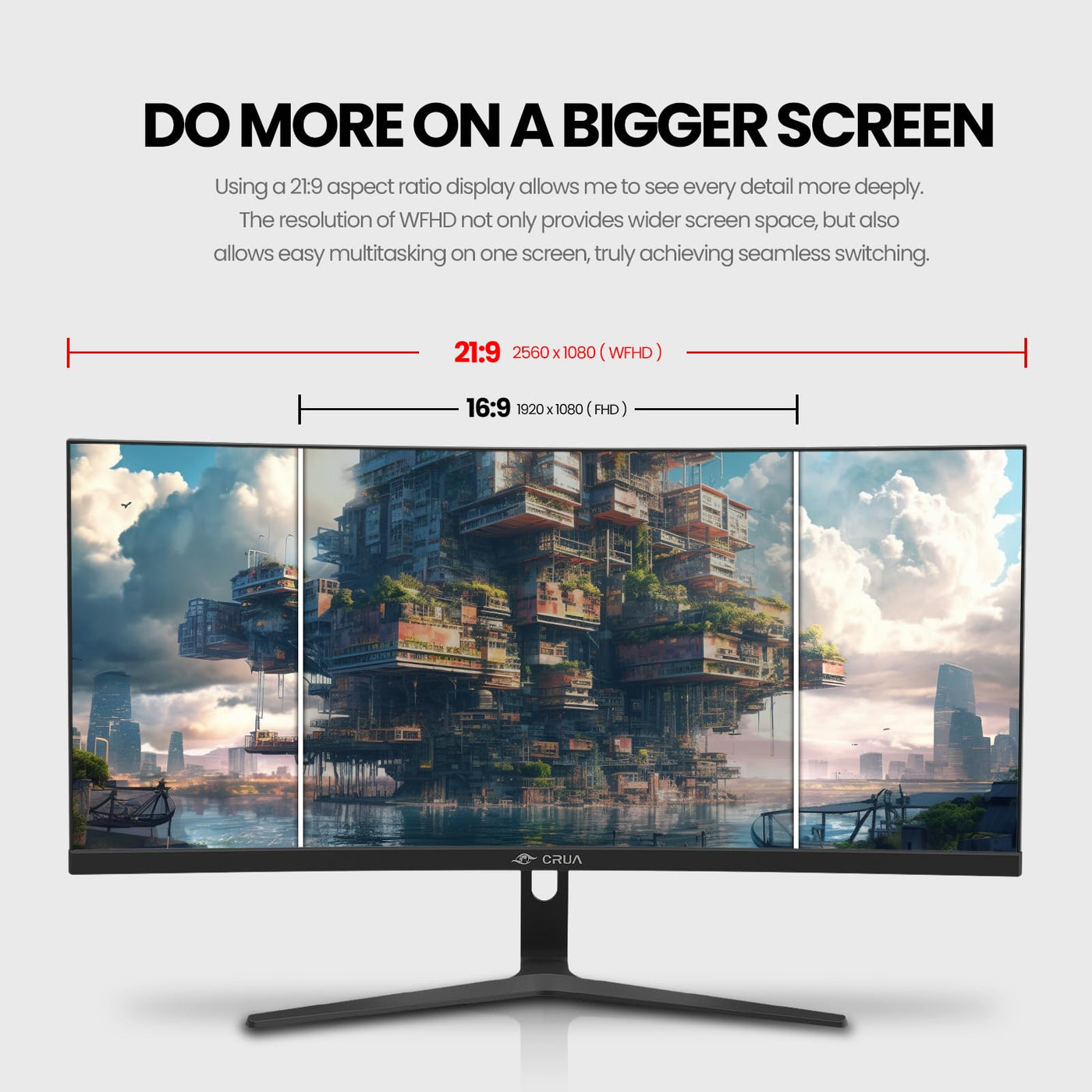 Crua 30Inch Ultrawide Curved Monitor, 21:9 Wfhd(2560X1080P) Va Computer Monitor, 99% Srgb 100Hz 1500R Pc Monitors Support Freesy