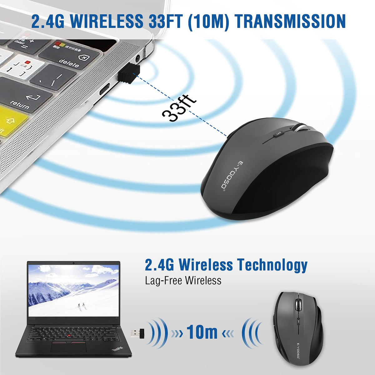 Wireless Mouse 2 Park, 2.4G Wireless Optical Mouse With Usb Nano Receiver For Laptop, Windows, Mac, Office Pc, Chromebook, Pc, Computer, Notebook