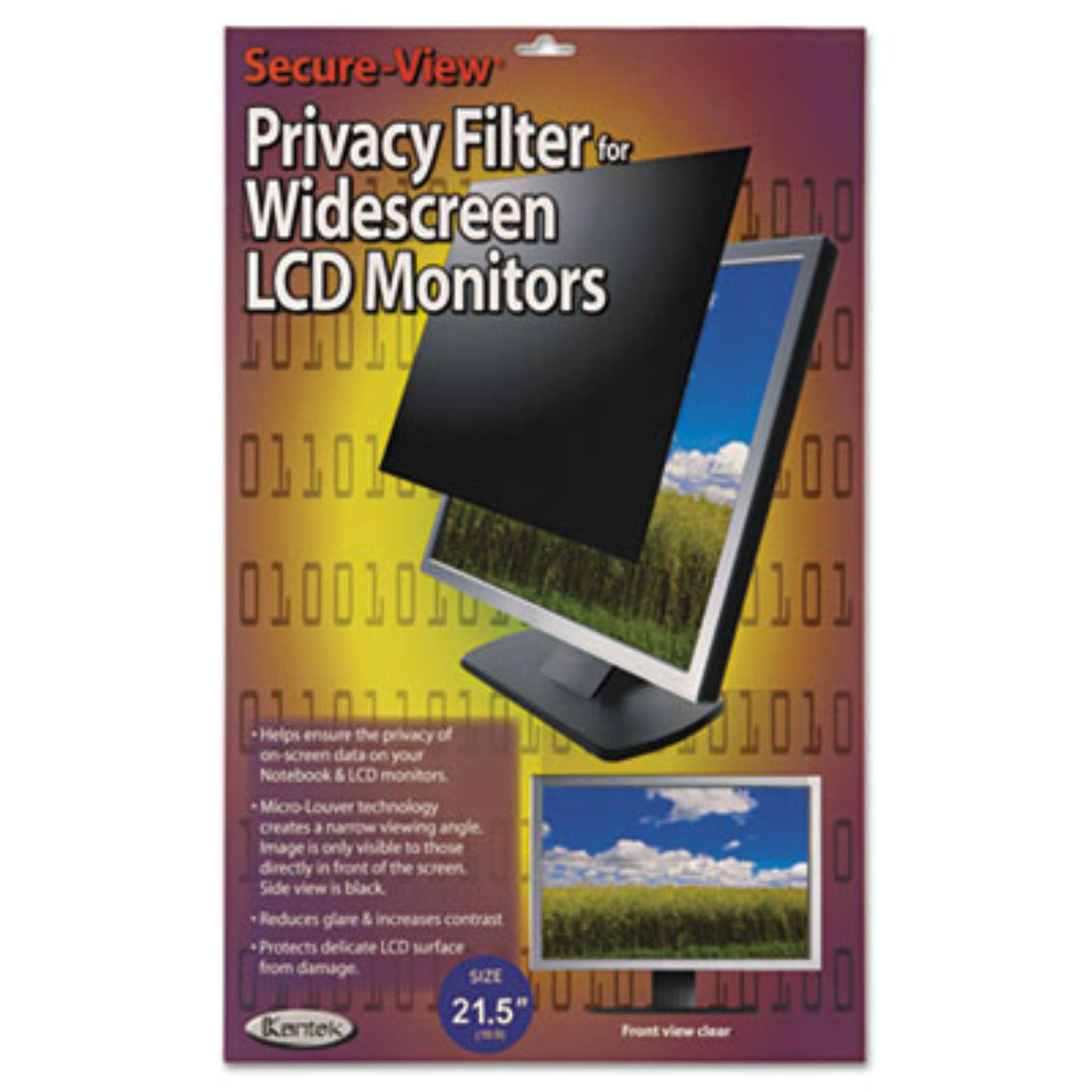 Kantek Secure View Blackout Privacy Filters Are Designed To Keep Confidential Work Secure From Prying Eyes. Blacks Out Screen Image When Viewed From Either Side, While Keeping A Crystal Clear Image When Viewing The Screen Straight-On. Fits Widescreen Lcd Monitors With A Diagonal Screen Measurement Of 21.5'' (Viewable Area Only) And A 16:9 Aspect Ratio; Actual Filter Dimensions Are 18 3/4'' W X 10 9/16'' H. Reduces Glare And Increases Contrast. Cleans Easily; Microfiber Cleaning Cloth Included. Lightweight, Thin, Frameless Design; Easy To Attach And Remove. Protects The Display From Scratches And Dirt. Can Help Health Care Institutions Meet Hipaa Patient Privacy Act Compliance.