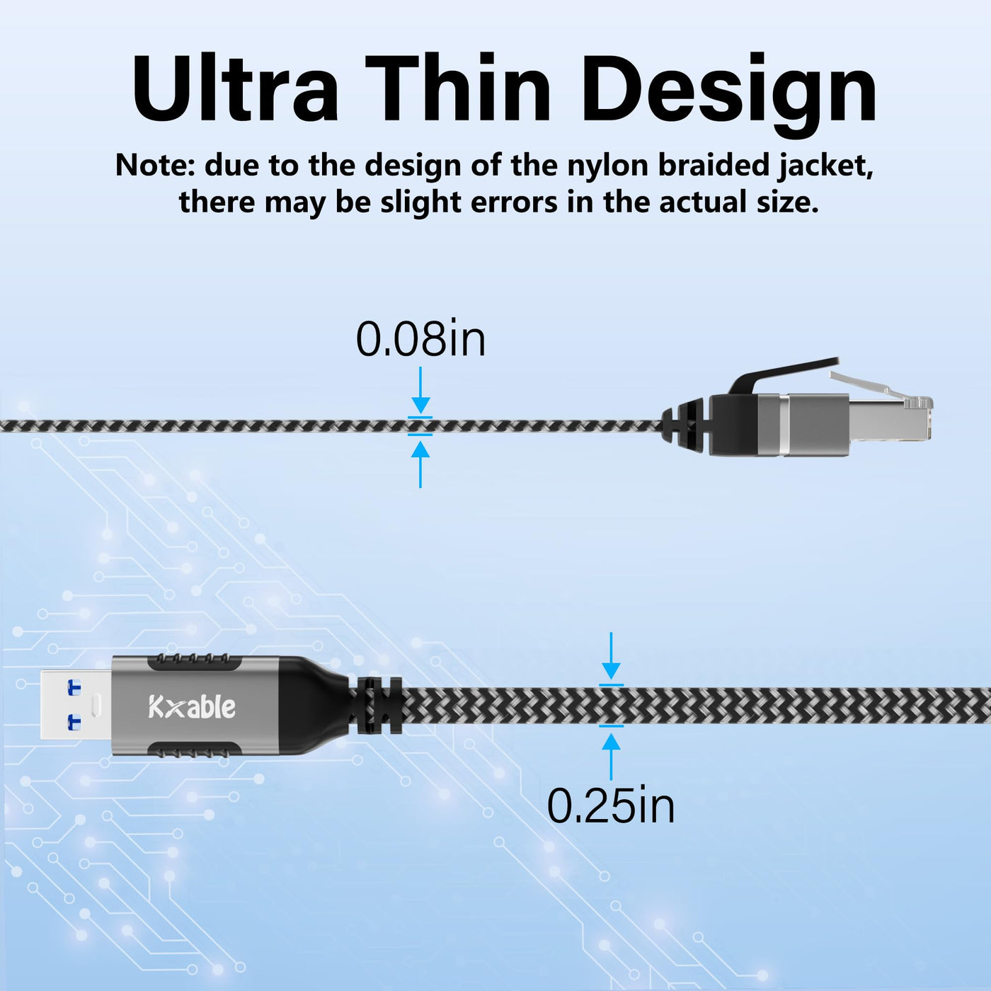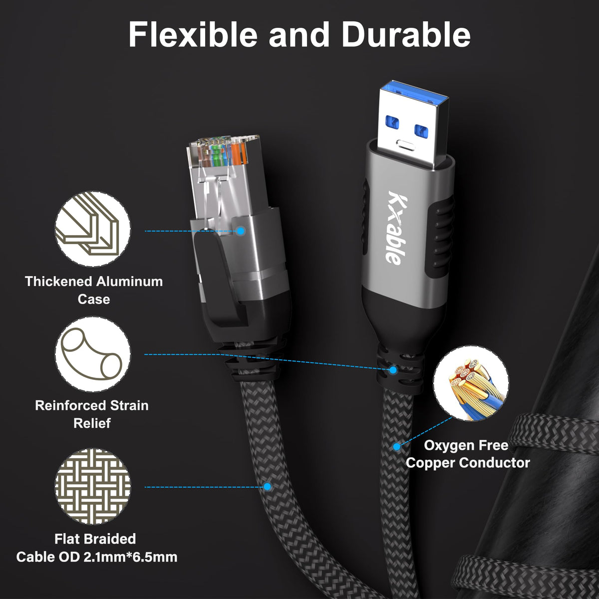 Flat Usb A To Ethernet Cable A Novel Solution : No Need To Connect Through A Combination Of Usb A To Rj45 Adapter And Internet Cable. Flat Design & Premium Build. Od: 0.8 Inch X 0.25 Inchdata Transmission Speed Of Up To 1000Mbp. Oxygen Free Copper Wires. Premium Aluminum Shell. Anti-Rupture Sr (Strain Relief) And Bicolor Nylon Braided Jacket. Wide Compatibility Compatible With Windows, Mac Os, Chrome Os, And Linux. Suitable For Most Desktop Pc, Laptop, Nintendo Switch, Switch Oled And Tv Boxes With Usb A Port, Such As Macbook Pro 2015/2017, Mac Mini, Thinkpad, Surface, Xps, Chromebook, Spectre, Zenbook And More.