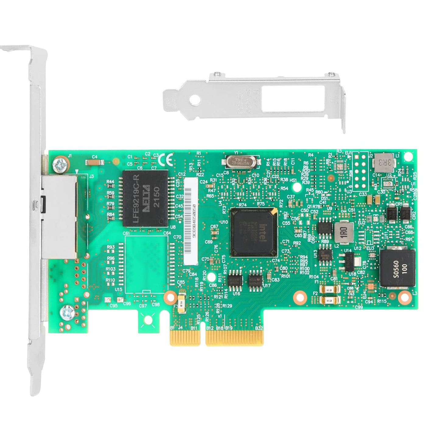 Q: What are the dimensions of the network card, and will it fit in a low-profile case?A: The network card measures 5.7 inches in length and 4.8 inches in width. It comes with both a low-profile bracket and a full-height bracket, allowing for easy installation in small form factor or low-profile computer cases.