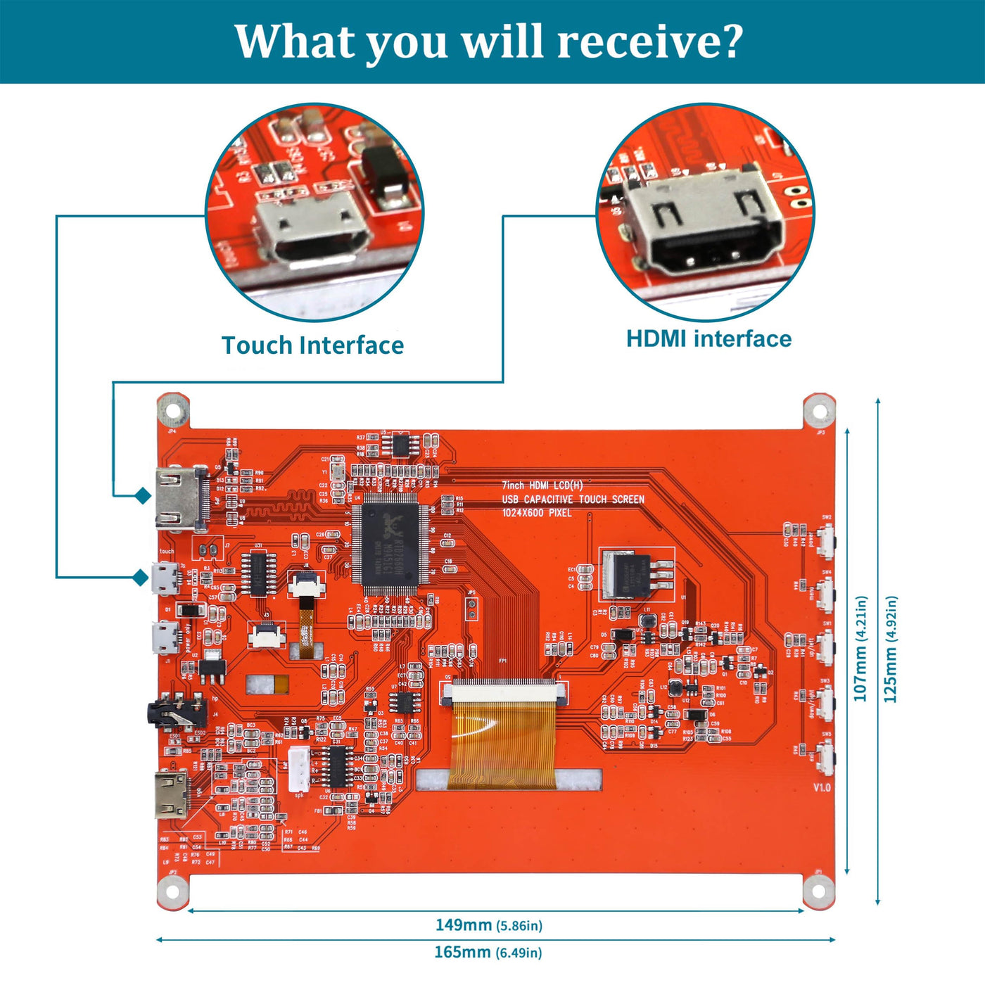 Raspberry Pi 7Inch Touchscreen With Hd 1024X600 Resolution, 16.7M(8Bit) Color Numbers Give High Color Restore The Display. Rectangular Ratio 16:9 Display Format Conversion. Ips 170 Full Wide Viewing Angle Gives You A Crystal-Clear Viewing Experience Of All Your Content.