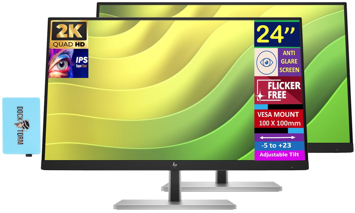 Hp 24'' Qhd Ips (2560X1440) Monitor Bundle With Docztorm Dock, 75Hz Refresh Rate, Vesa Mount (100X100Mm), Anti-Glare, Flicker-Fr