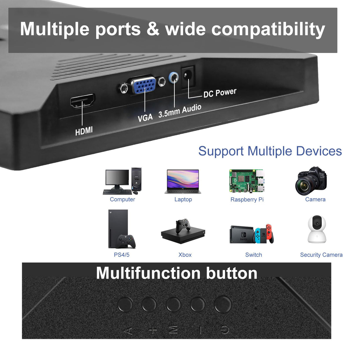 Portable Monitorscompact Monitorshdmi Monitorportable Laptop Monitorsportable Gaming Monitors13-Inch Monitorsexternal Monitorsled Monitorsportable Computer Monitorscomputer Monitorsvga Monitorstravel Monitorsproduct Details:Full Hd 13.3-Inch Portable Monitor Screen Size: 13.3 Inchesresolution: 1366X768P 1366X768P Up To 768Presponse Time: 5 Millisecondsscreen Ratio: 16:9Brightness 300Cd/Mcontrast Ratio: 800:1Color: Blackspeakers Built-In Stereo Speakersbuilt-In 90 Adjustable Standmultiple Ports: Hdmi And Vga Ports, 1*3.5Mm Headphone Jackpackage Includes1 X 13.3'' Hd Display1 X Power Supply1 X Hdmi Cable1 X Instruction Manual