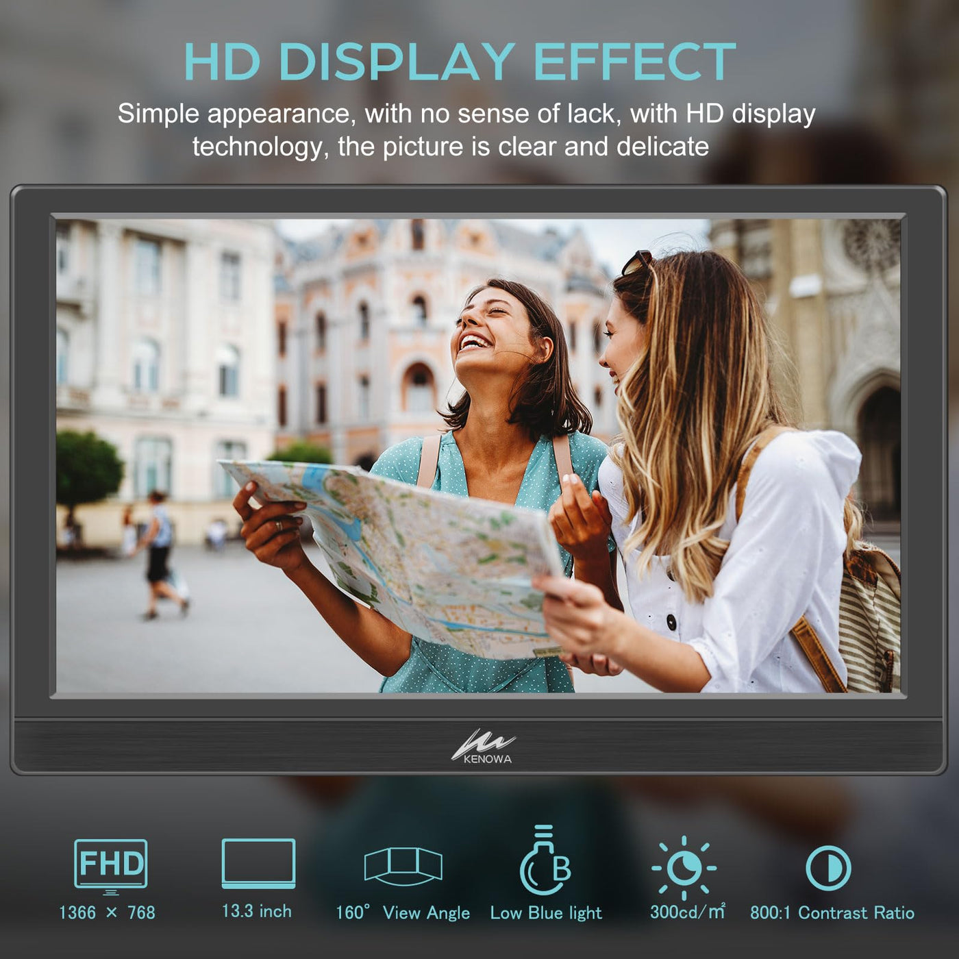 Kenowa Portable Monitor 13.3 Inch Hd 1366X768P Led Screen Small Hdmi Monitor Built In Speaker And Adjustable Stand Hdmi Vga Port