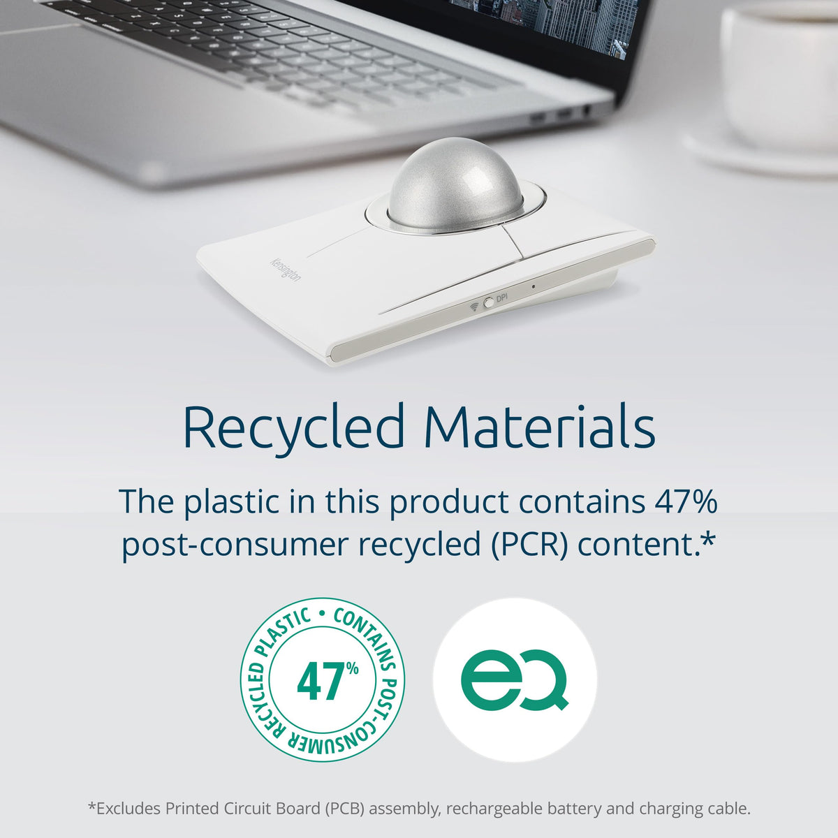 Kensington Slimblade Pro Eq Wireless Trackball, Bluetooth, 2.4Ghz Connection, Rechargeable, Programmable Buttons, White/Silver B