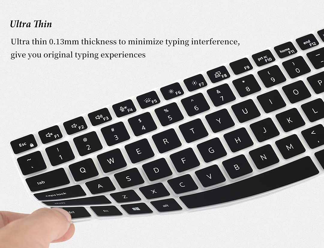 Q: Will the keyboard cover affect my typing experience?A: No, the ultra-thin design of only 0.13mm minimizes typing interference, allowing for a comfortable typing experience while offering full protection against dust and spills.