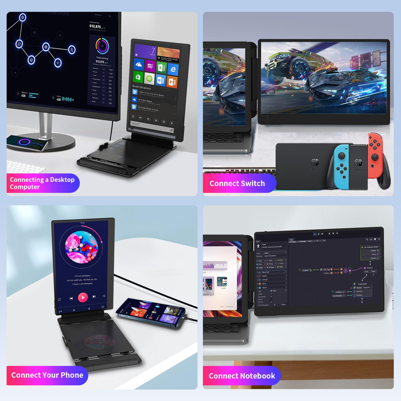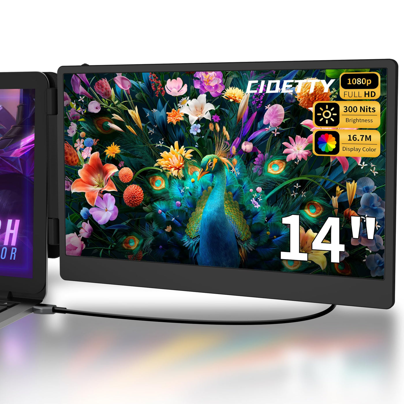 Laptop Screen Extender Portable Monitor, Dual Monitor Extender For Laptop, 14'' Screen 1080P Fhd Display, Fit For 13-17'' Laptop, Plug And Play Compatiable With Windows, Mac, Chrome, Android And Switch
