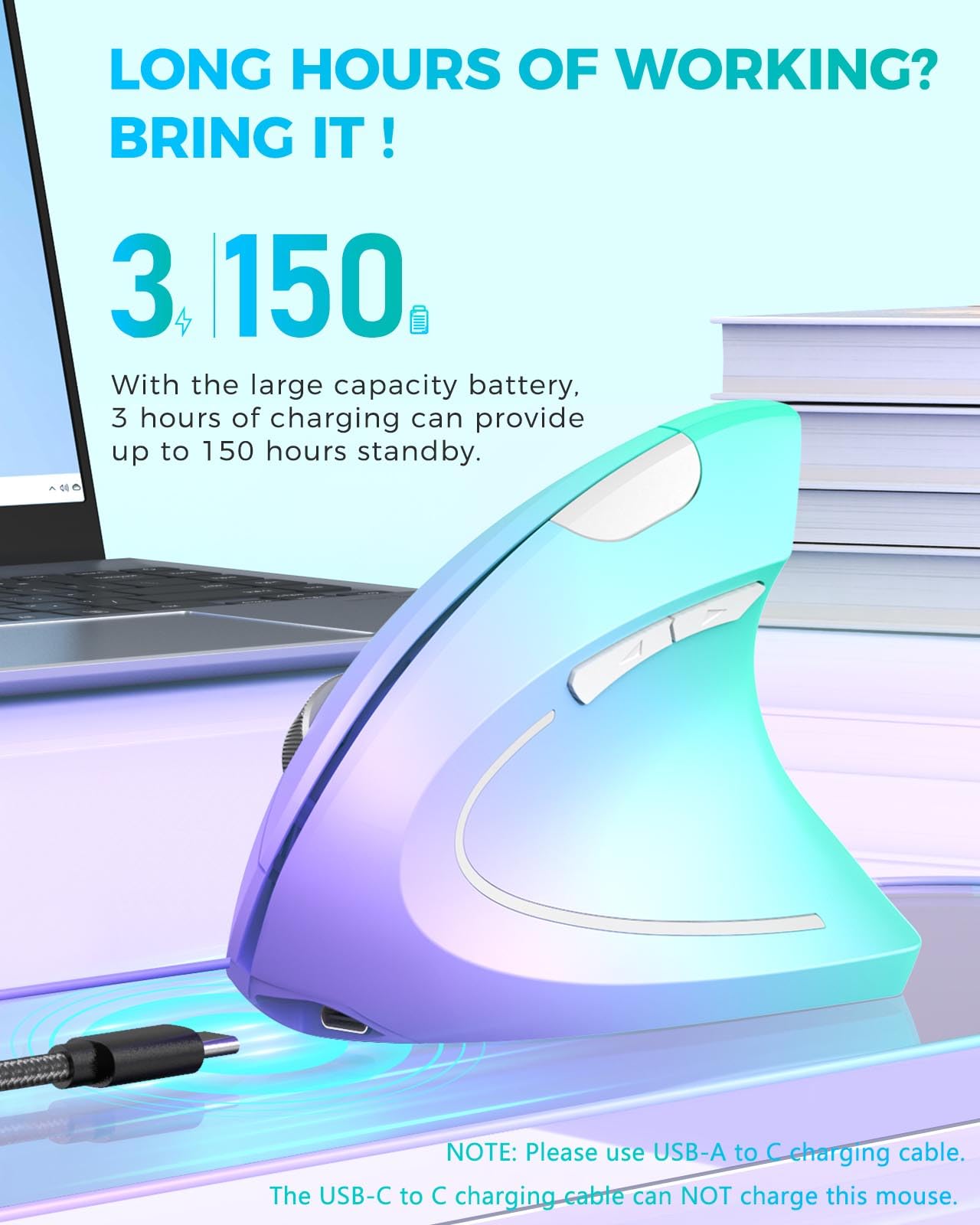 Wireless Ergonomic Vertical Mouse Specification: Color: Purple Green Item Weight:95G Item Dimension:5.0 X 3.0 X 2.5 Inch Connection Mode: 2.4G Usb, Plug And Play Sensitivity: 3 Dpi Modes: 800-1200-1600 Adjustable