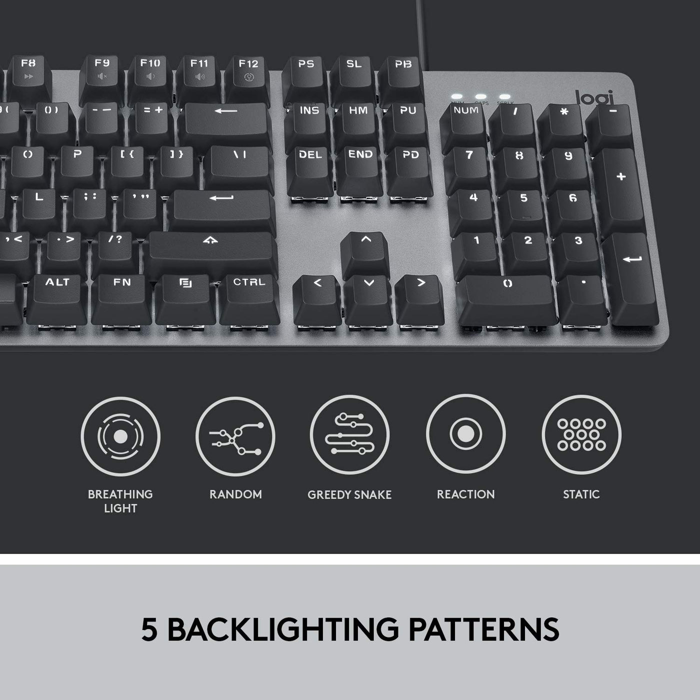 Logitech K845 Mechanical Illuminated Keyboard,Mechanical Switches, Strong Adjustable Tilt Legs, Full Size, Aluminum Top Case, 10