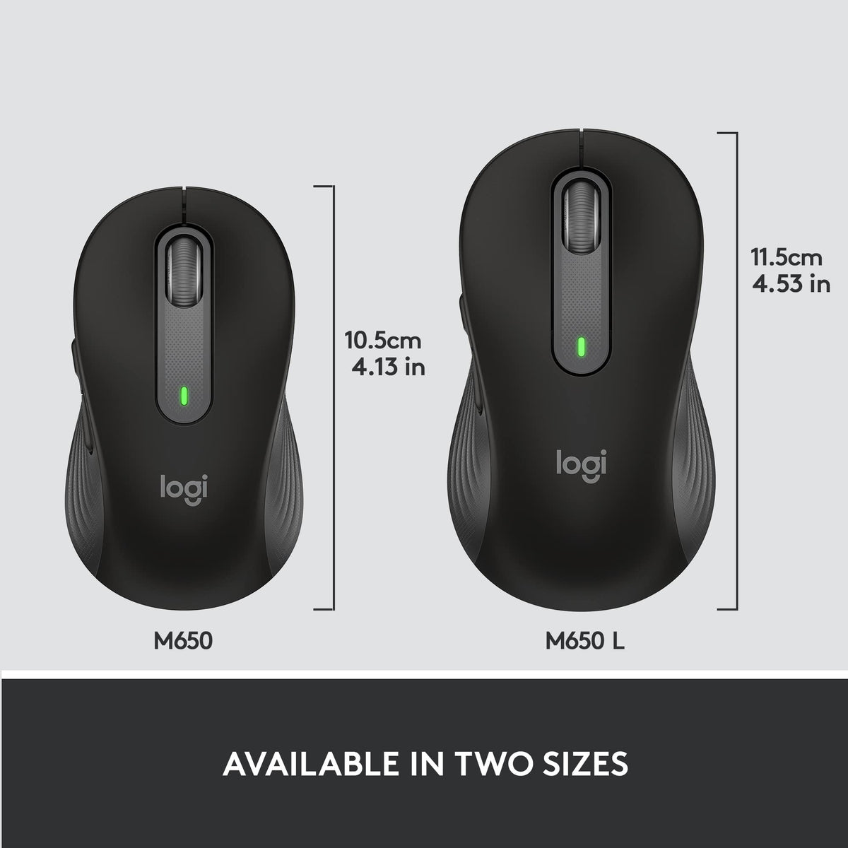 Upgrade To Smarter Scrolling, Better Comfort, And More Productivity With The Signature M650 The Versatile Mouse Features An Adaptive Scroll Smartwheel That Delivers Line-By-Line Precision, And Auto-Switches To Super Fast Free Spin Mode With The Flick Of A Finger. A Choice Of Sizes For Smaller, Larger And Left Hands Means There'S A Perfect Fit For Anyone. Seamless Wireless Connectivity, Customizable Side Buttons, And A Comfort Shape Keep You Comfortably And Productive Hour After Hour. Logitechs Silenttouch Technology Delivers Silent Clicks To Keep You Focused - While 24-Month Battery Life** And Universal Operating System Compatibility Ensure Hassle-Free Performance. **Battery Life May Vary Based On User And Computing Conditions.