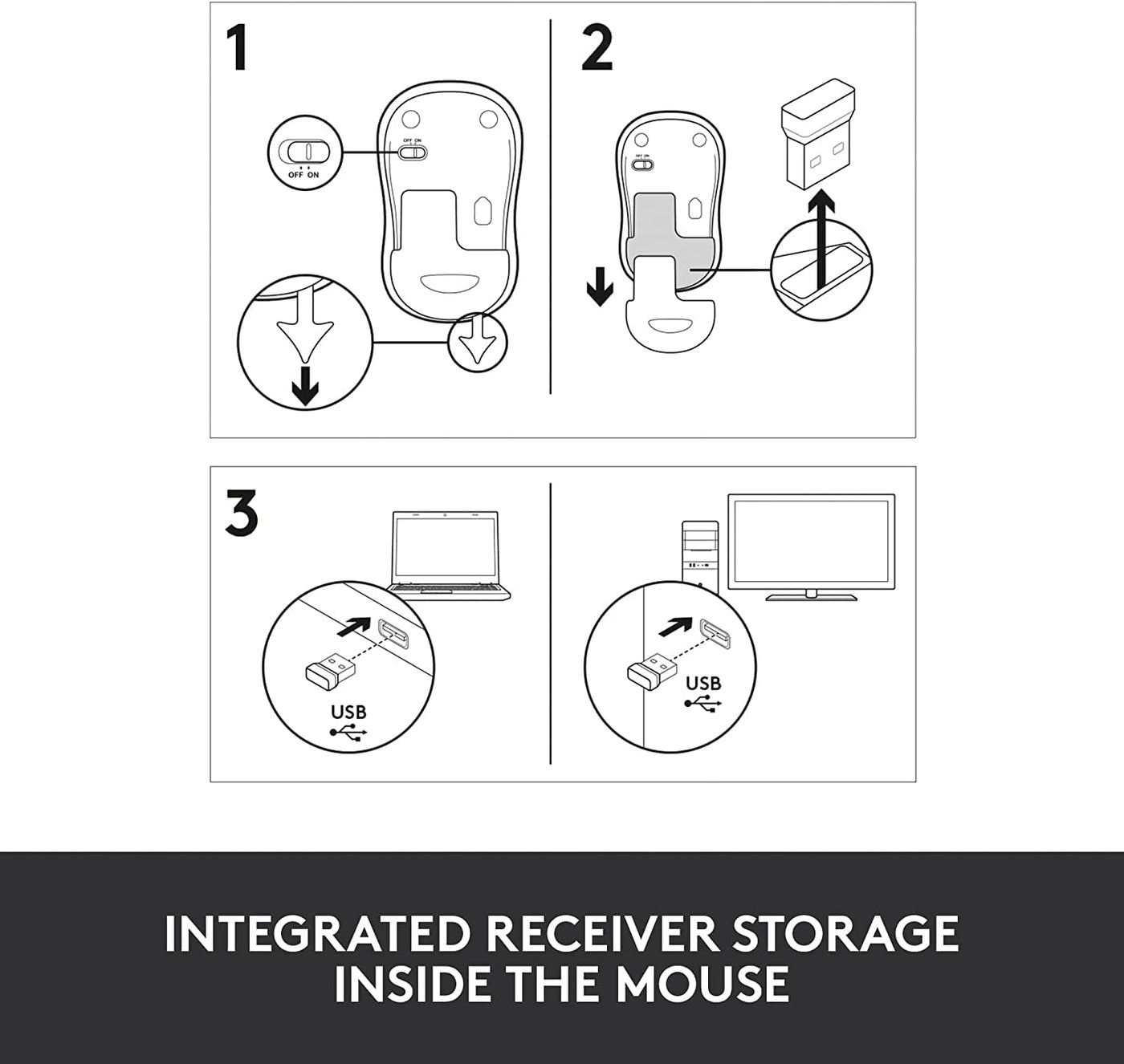 Q: How do I connect the Logitech Wireless Mouse M185 to my computer?A: To connect the Logitech Wireless Mouse M185, simply insert the USB dongle into an available USB port on your computer. Ensure that the USB dongle is stored in the battery compartment of the mouse for convenience. Once plugged in, turn on the mouse, and it should automatically connect.