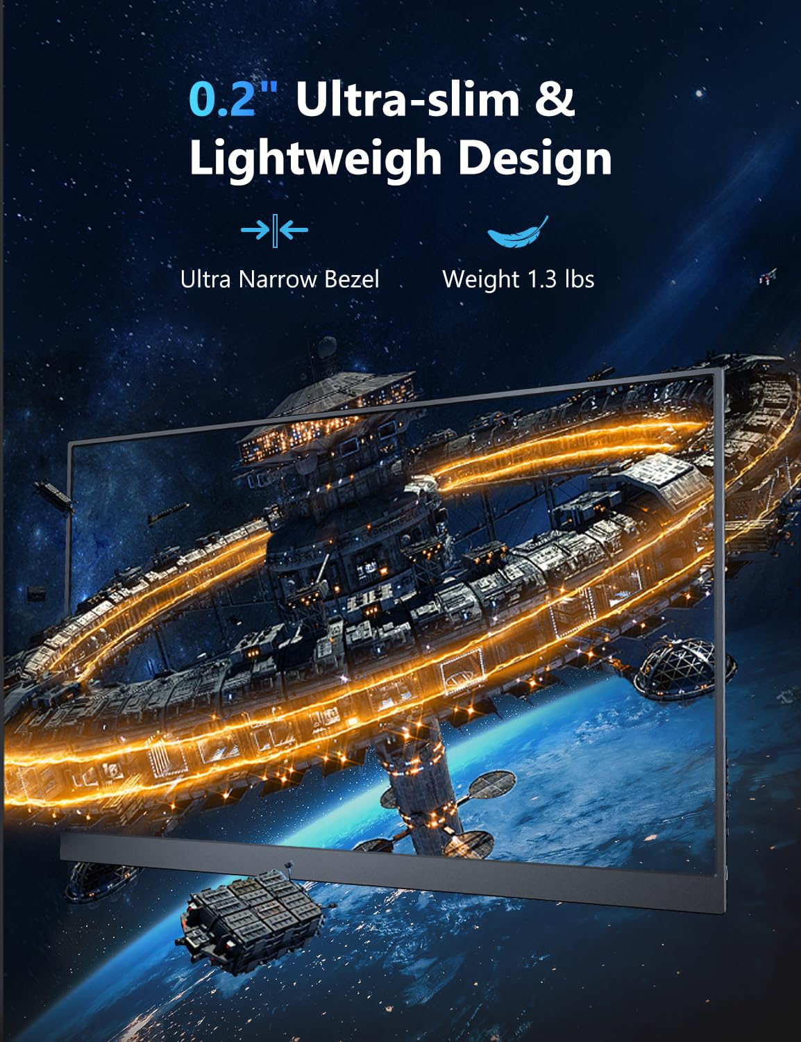 Q: Is the MAGICRAVEN monitor portable for travel?A: Yes, the MAGICRAVEN monitor is designed for portability. Weighing only 1.3 lbs and with a thickness of 0.2" to 0.35", it easily fits into bags, making it ideal for travel, whether for work or leisure.