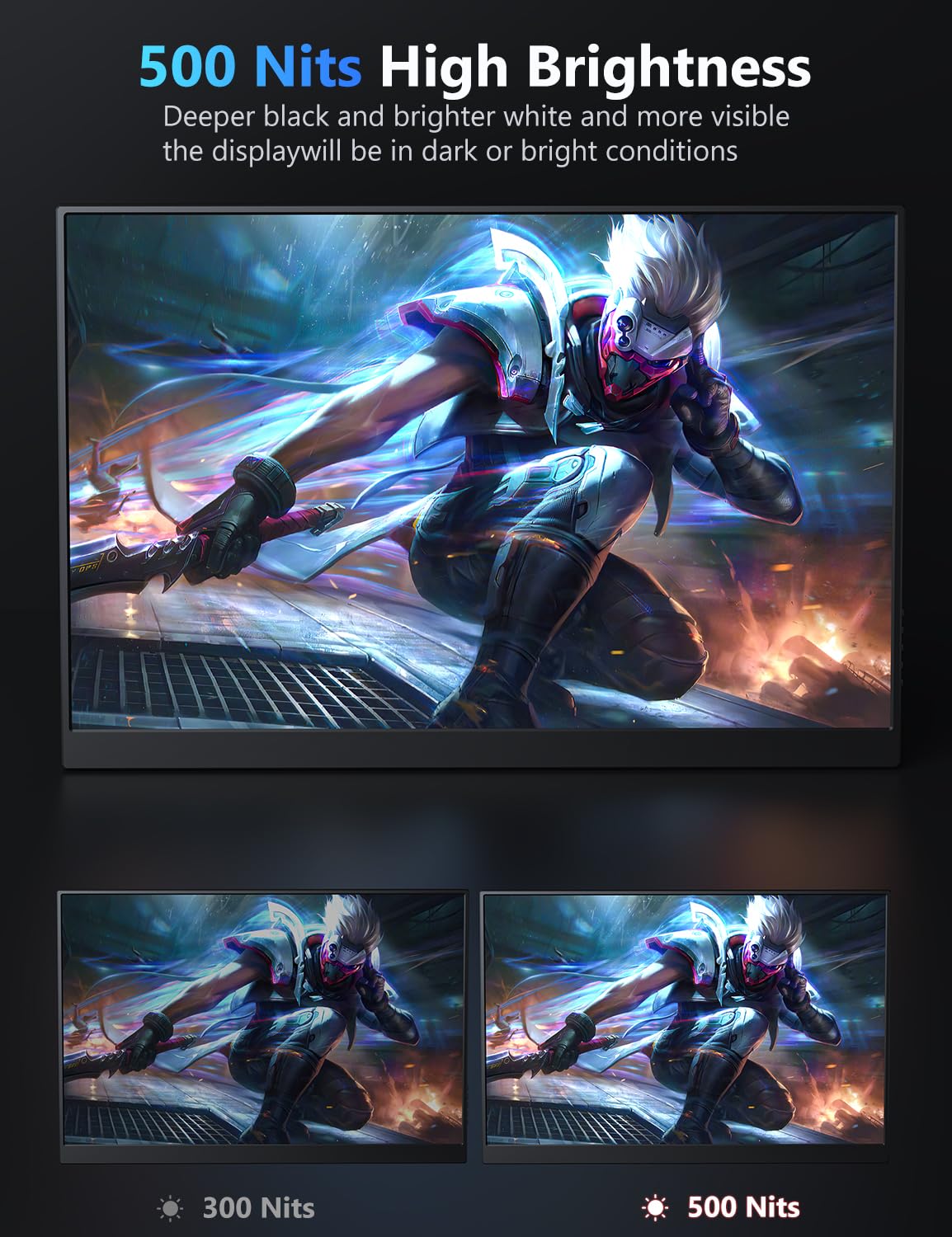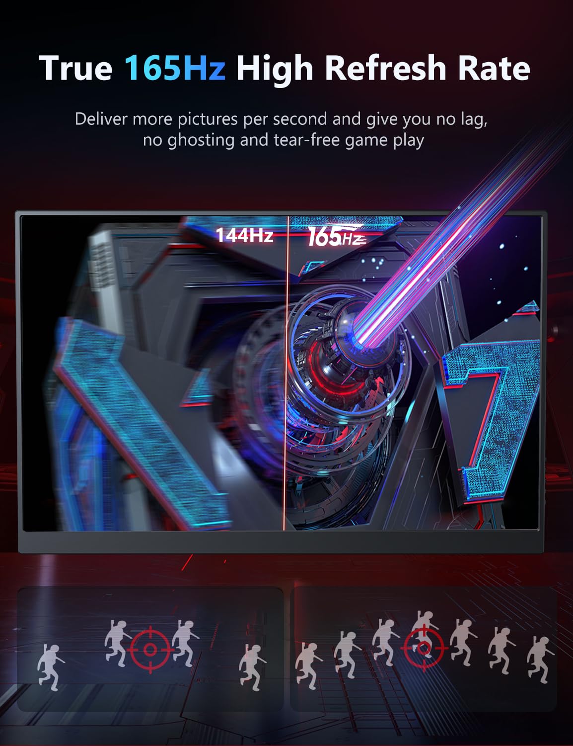 Magicraven 165Hz Portable Gaming Monitor, 16'' 1920X1200 500 Nits Laptop Monitor, Second Computer Display With Speakers, Dual Sc