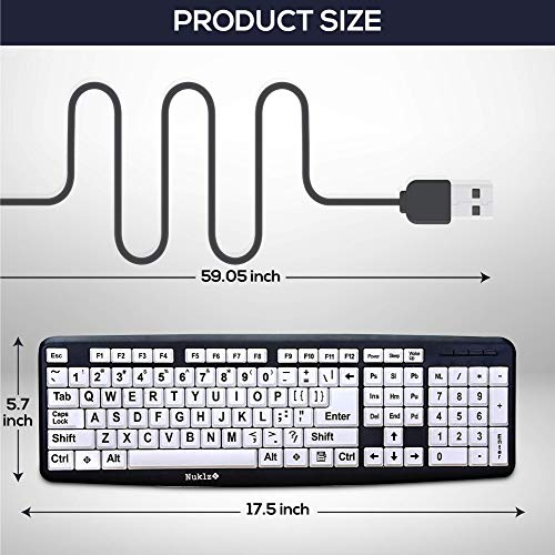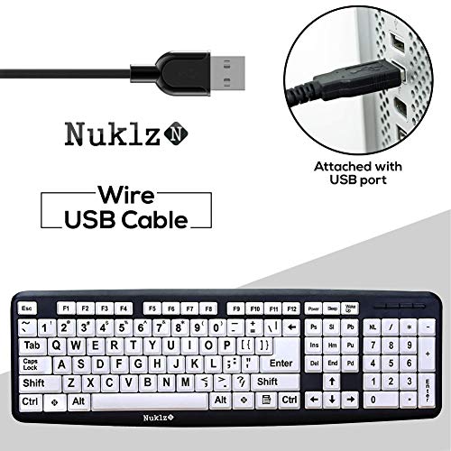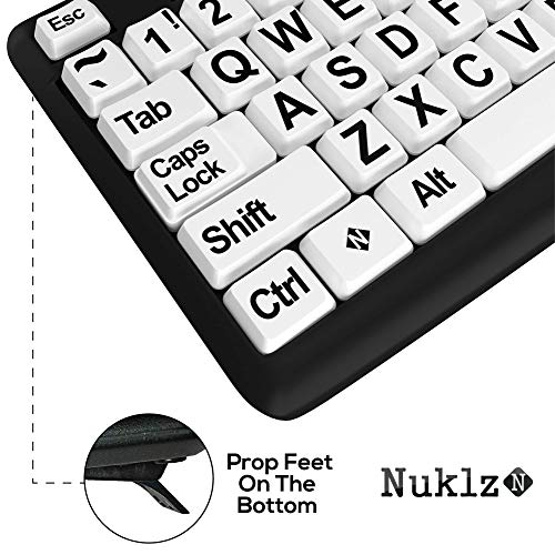 Nuklz N Large Print Computer Keyboard | Visually Impaired Keyboard | High Contrast Black And White Keys Makes Typing Easy | Perf