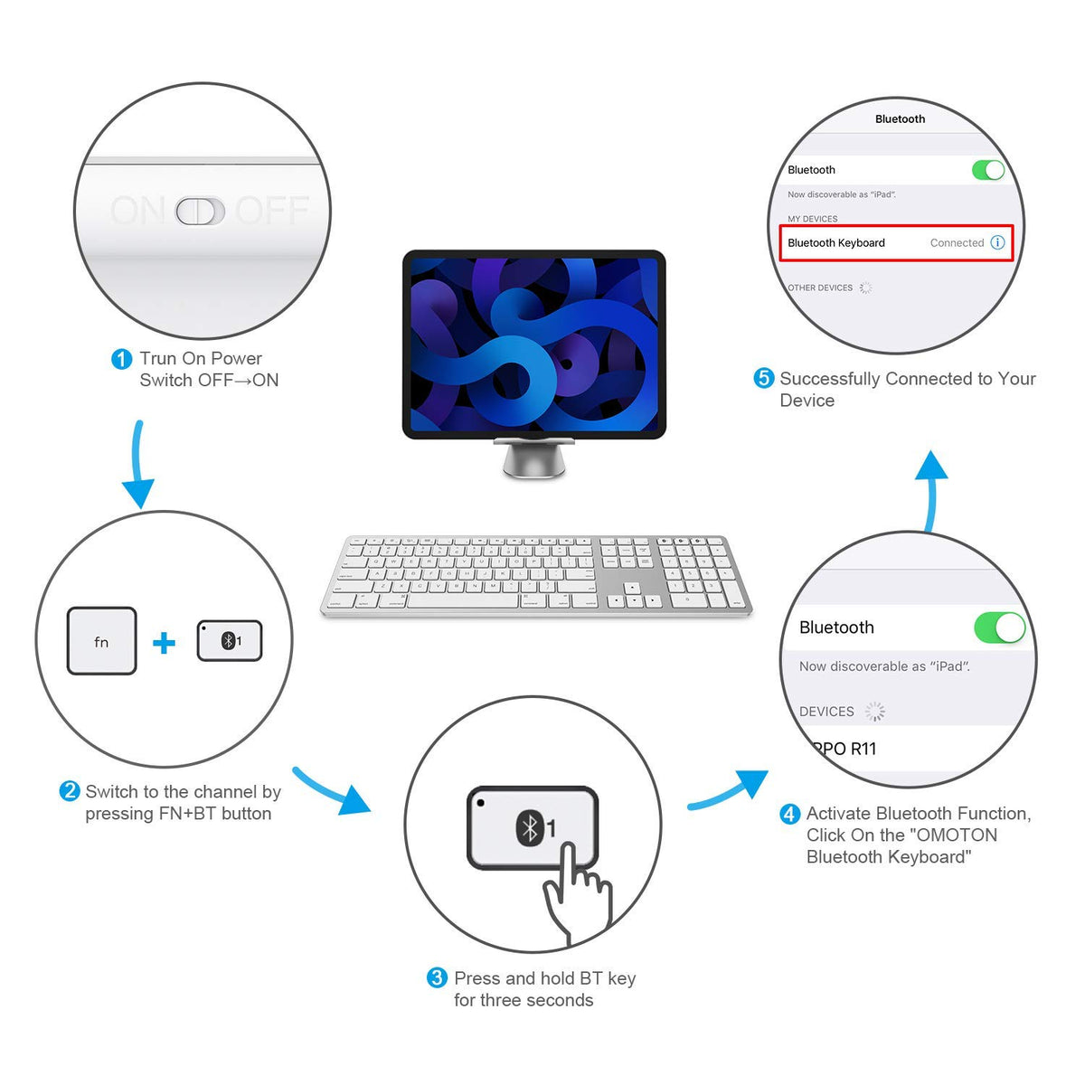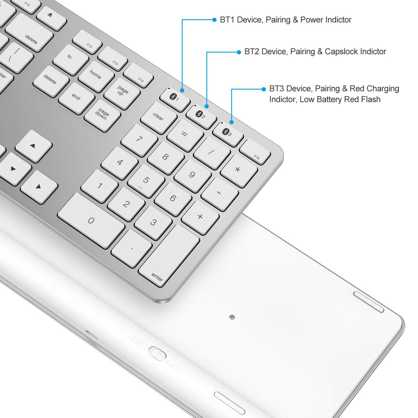 Omoton Bluetooth Keyboard For Mac, Wireless Keyboard With Numeric Keypad, Multi-Device, Rechargeable, Compatible With Macbook Pro/Air, Imac, Imac Pro, Mac Mini, Mac Pro Laptop And Pc (Silver)