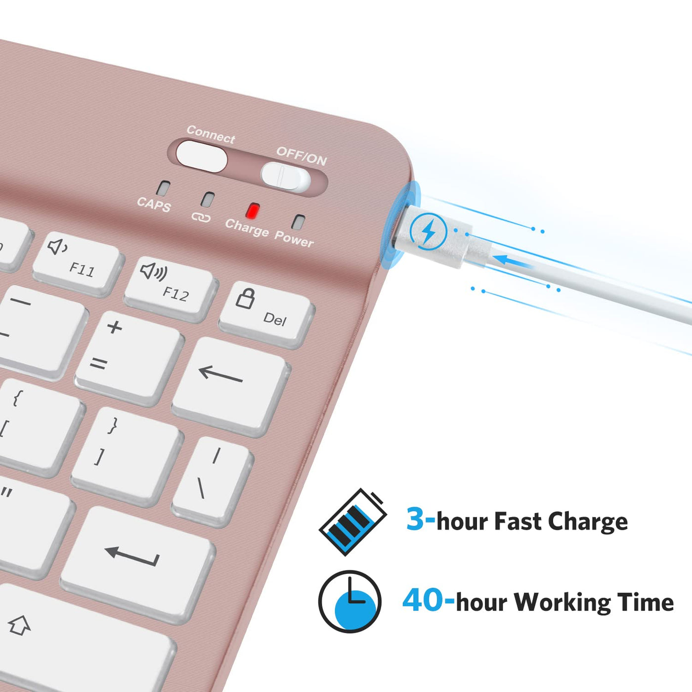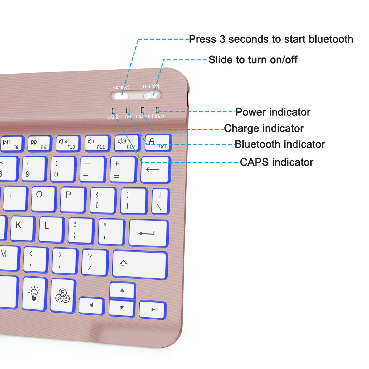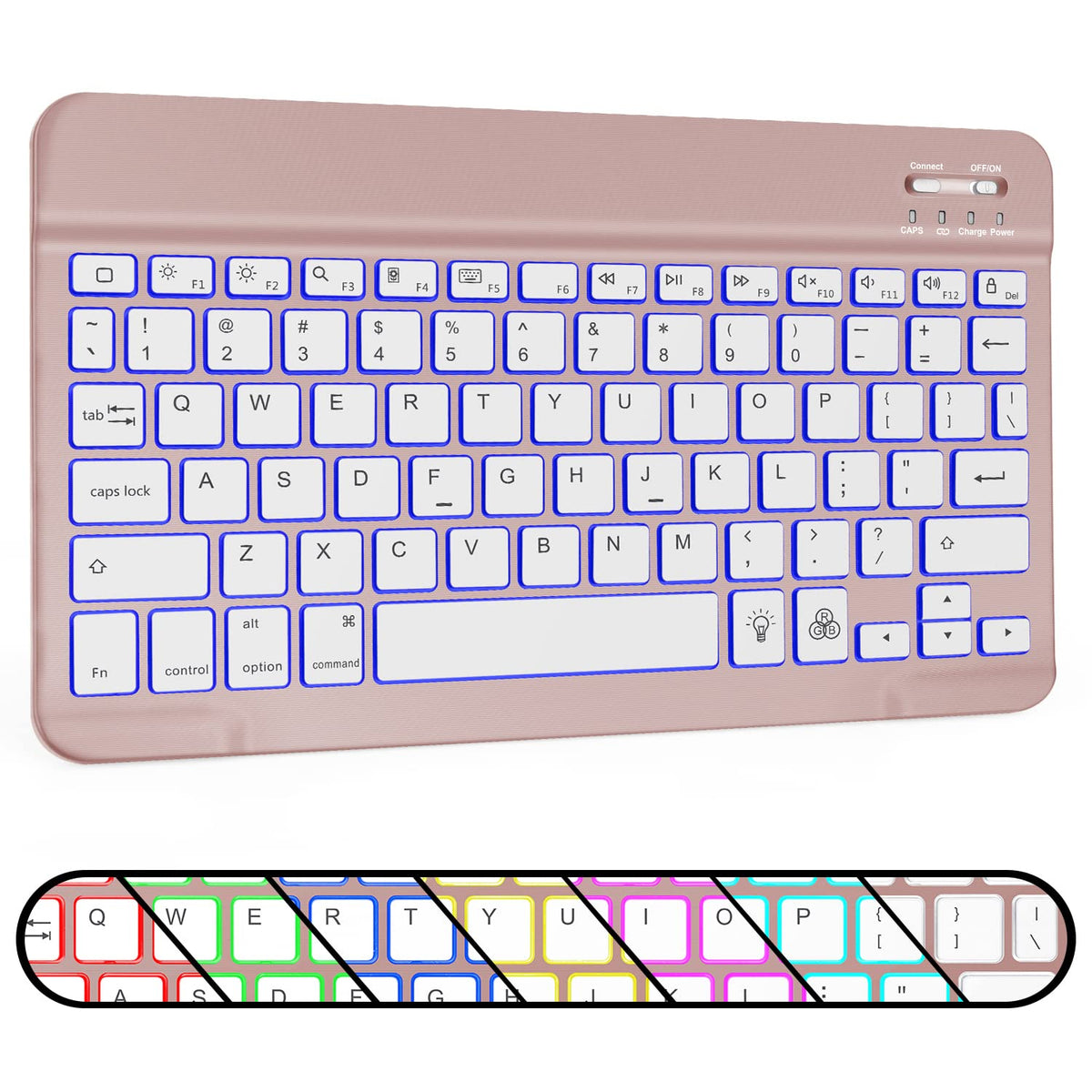 Omoton Bluetooth Keyboard, Wireless Rechargeable Keyboard For Ipad, Ipad Pro, Ipad Mini, Ipad Air With Illuminated Led (Rose Gold)