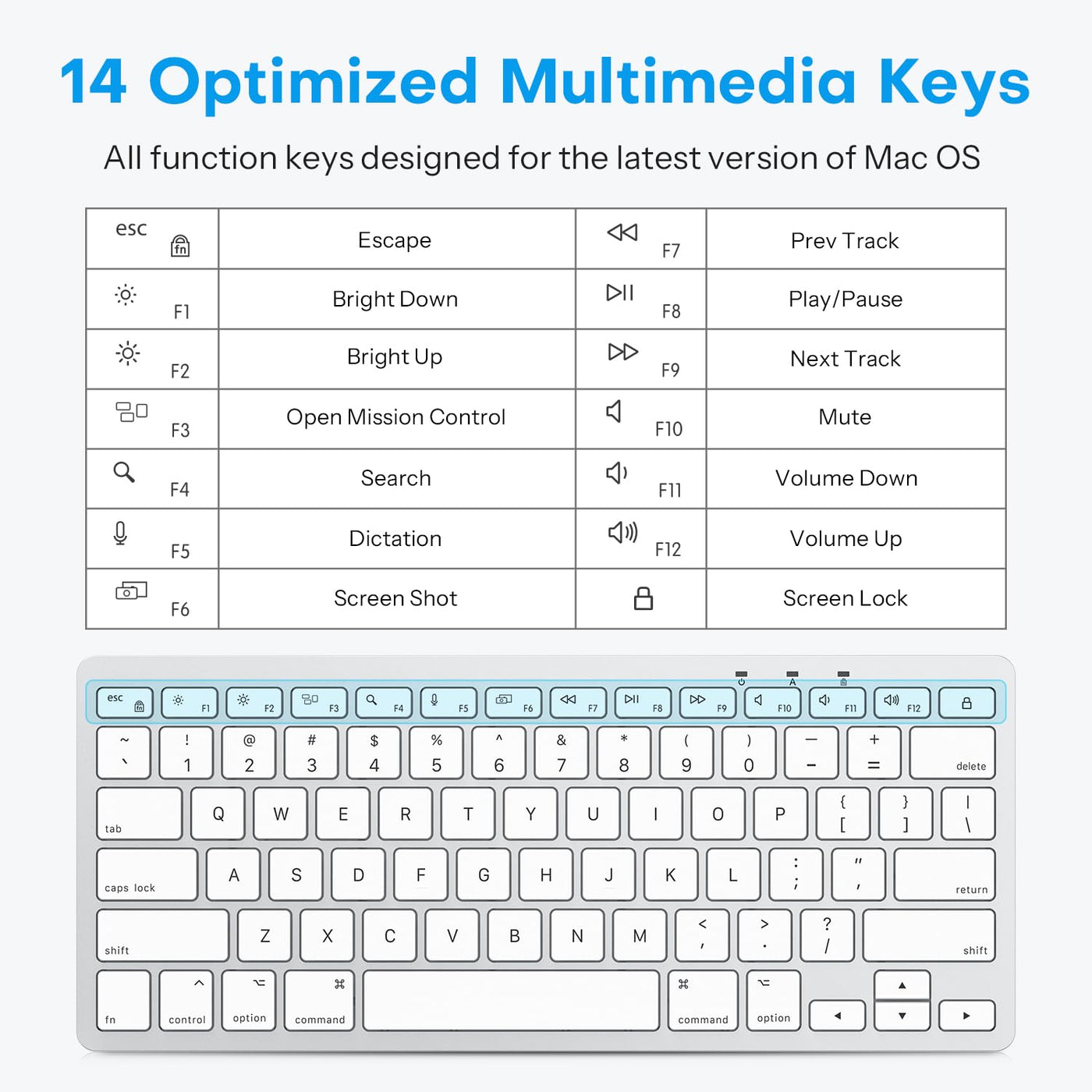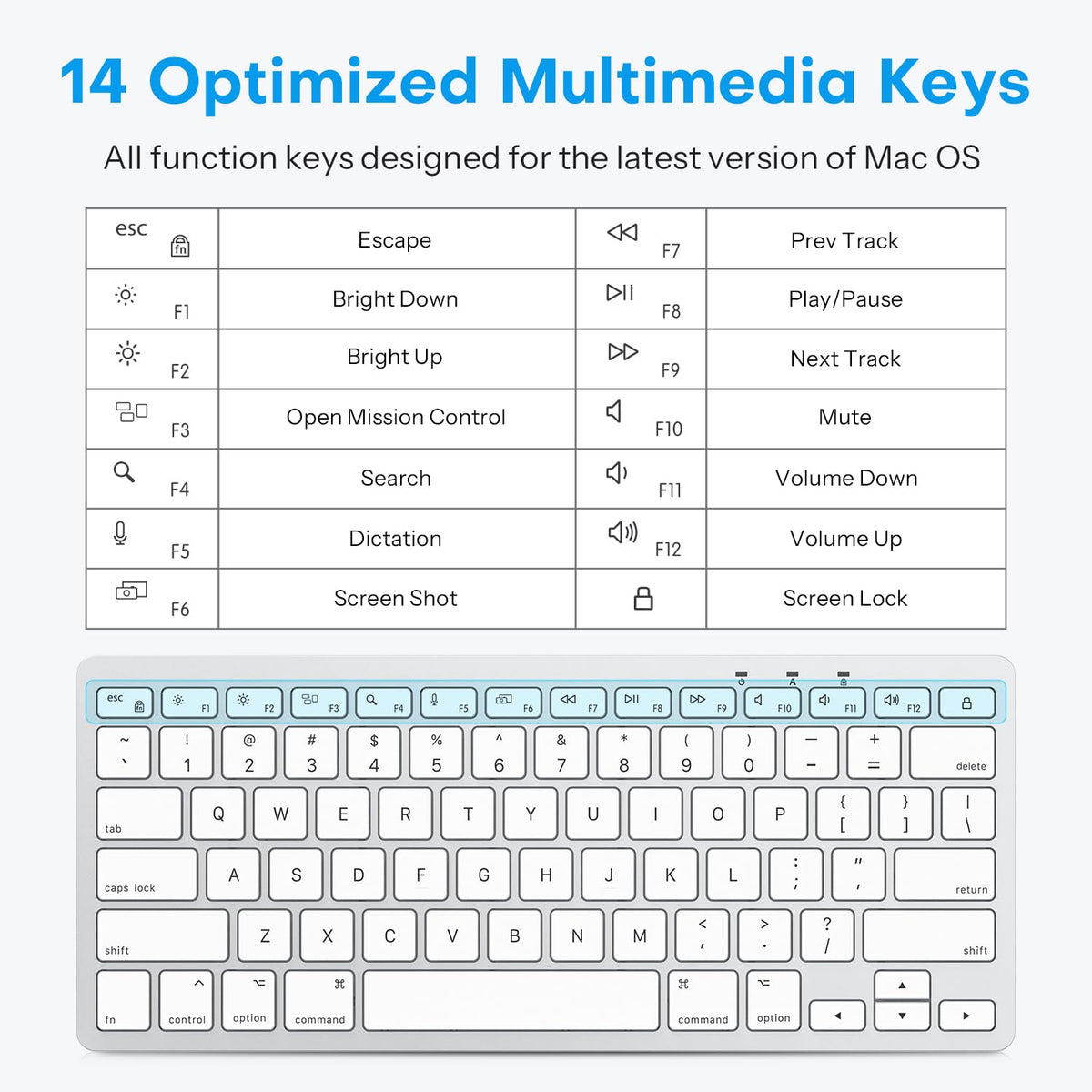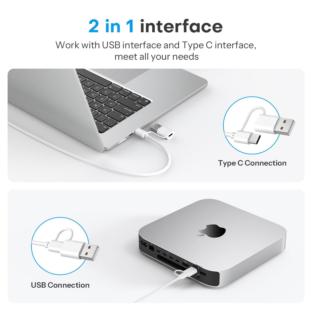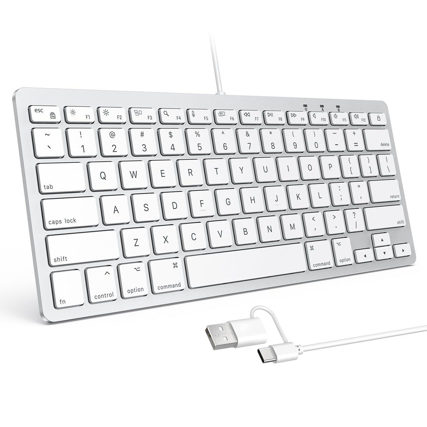 Omoton Wired Keyboard For Mac With Dual Interface, Comfortable Typing Angle & Stable Connection, Compatible With Macbook, Imac, Mac Mini, Pc White