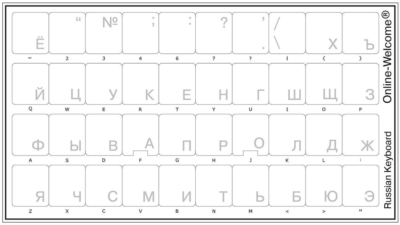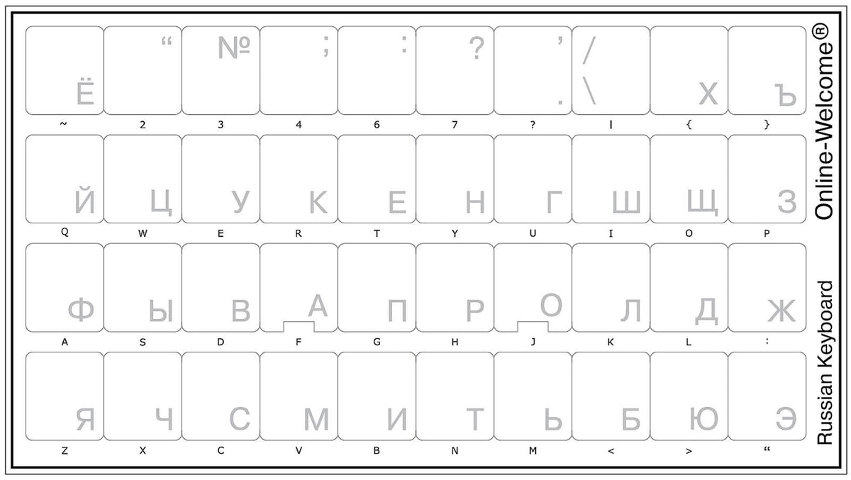 Russian Keyboard Stickers Transparent Background With White Lettering For Computers Laptops Desktop Keyboards. Stickers Are Laminated And Made With Typographical Method On High-Quality Matte Vinyl. Made In Usa. You Are In The Right Place If You Need High Quality Keyboard Stickers. Size Of Small Sticker Is 11.5 X 13 Mm. Trade Mark Online-Welcome .