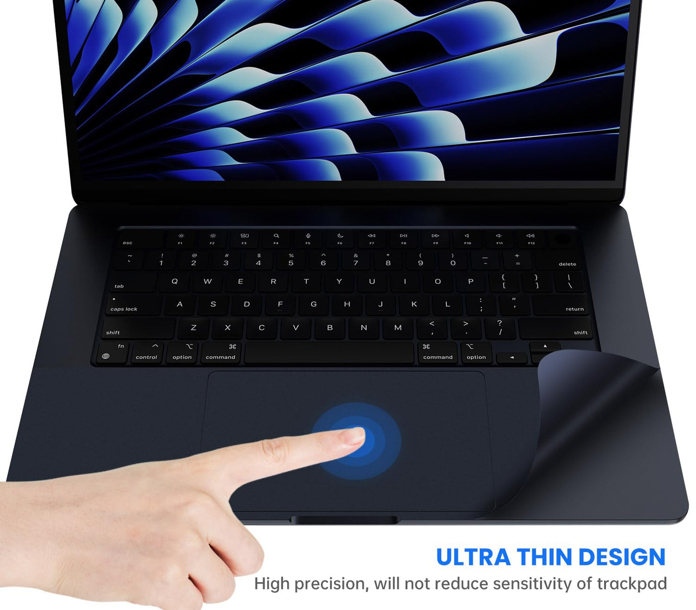 Q: Will the Palm Rest Cover affect the functionality of my trackpad?A: No, the Palm Rest Cover is made from high-quality, ultra-thin material that does not interfere with the functionality or sensitivity of your MacBook's trackpad. You will hardly notice it is there.