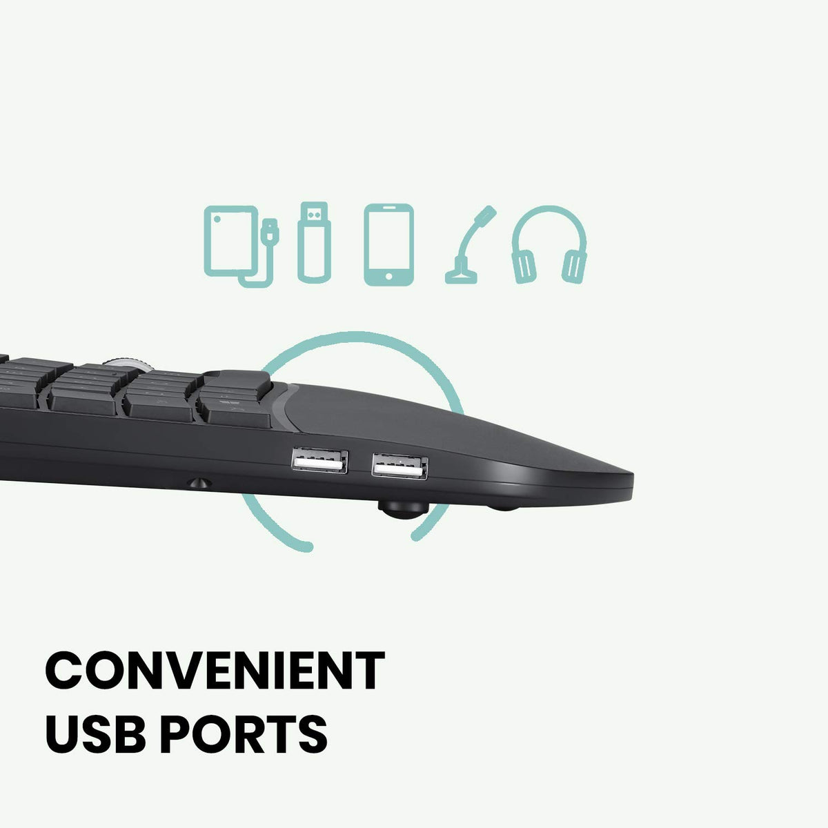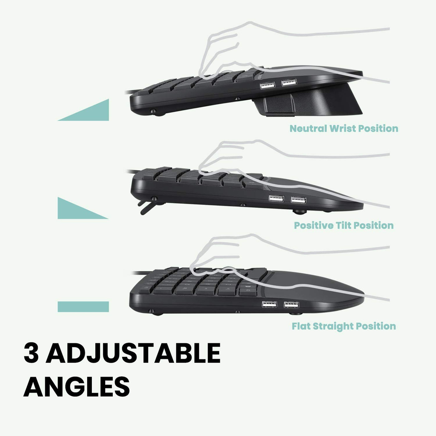 Perixx Periboard 330B, Wired Ergonomic Keyboard With Adjustable Wrist Rest, Illuminated Keys, And Membrane Low Profile Keys, 2 Extra Usb Ports, Us English Layout
