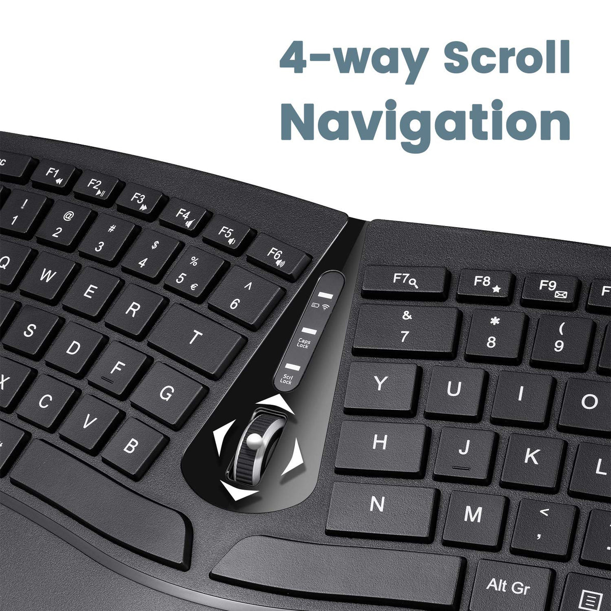 All-In-One Compact Combo - Mini Keyboard And Mouse Value Kit With Split Key Design And Without Number Pad Area; Portable Slim Keyboard Design With Curved Keytop Geometry With Naturally Arched Shape And Integrated Adjustable Palm Rest Stand That Promotes A Neutral Wrist Position | Wireless Connectivity - 2.4 Ghz Wireless Technology With Approximately 33 Feet (10 Meters) Operating Distance; One Nano Usb Receiver For Both Mouse And Keyboard; You Can Find The Receiver In The Receiver Compartment Located On The Backside Of The Keyboard | Split-Key Keyboard - A One-Piece Design That Simply Separates The Keys Into Two Groups For The Left And Right Hand To Reduce Bending Your Wrists Outward While Typing; Designed Specifically In Order To Reduce The Pressure From Your Hands While Computing And Give You The Benefit To Type Relaxed And Effortlessly; Keyboard Dimensions: 13.82 X 8.94 X 2.56 Inches | Silent Vertical Mouse - 5-Button Mouse With Ergonomic Design And Adjustable Dpi Resolution (800 / 1200 / 1600); Mouse Dimensions: 4.5 X 2.64 X 2.28 Inches | System Requirements - Windows 7, 8, 10 And 11; Easy Installation With Plug And Play Feature, Package Includes: 1 Keyboard, 1 Mouse, 1 Armrest, 1 Movable Magnet (For Height Adjustment), 1 Receiver (Found In The Keyboard) Manual, And 12-Month Limited Warranty