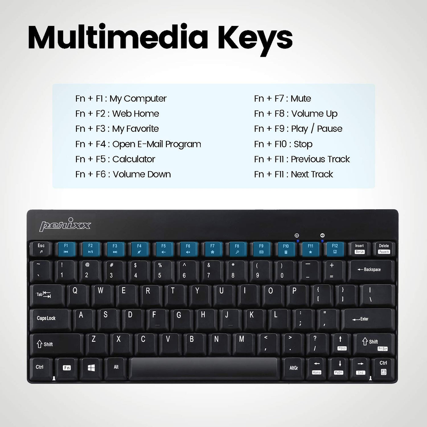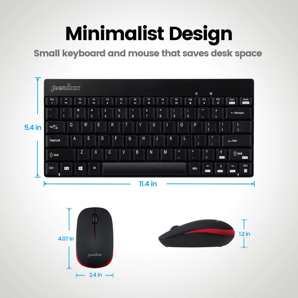 Perixx Periduo 712B Wireless Mini Keyboard And Mouse Set, Black, Us English Layout