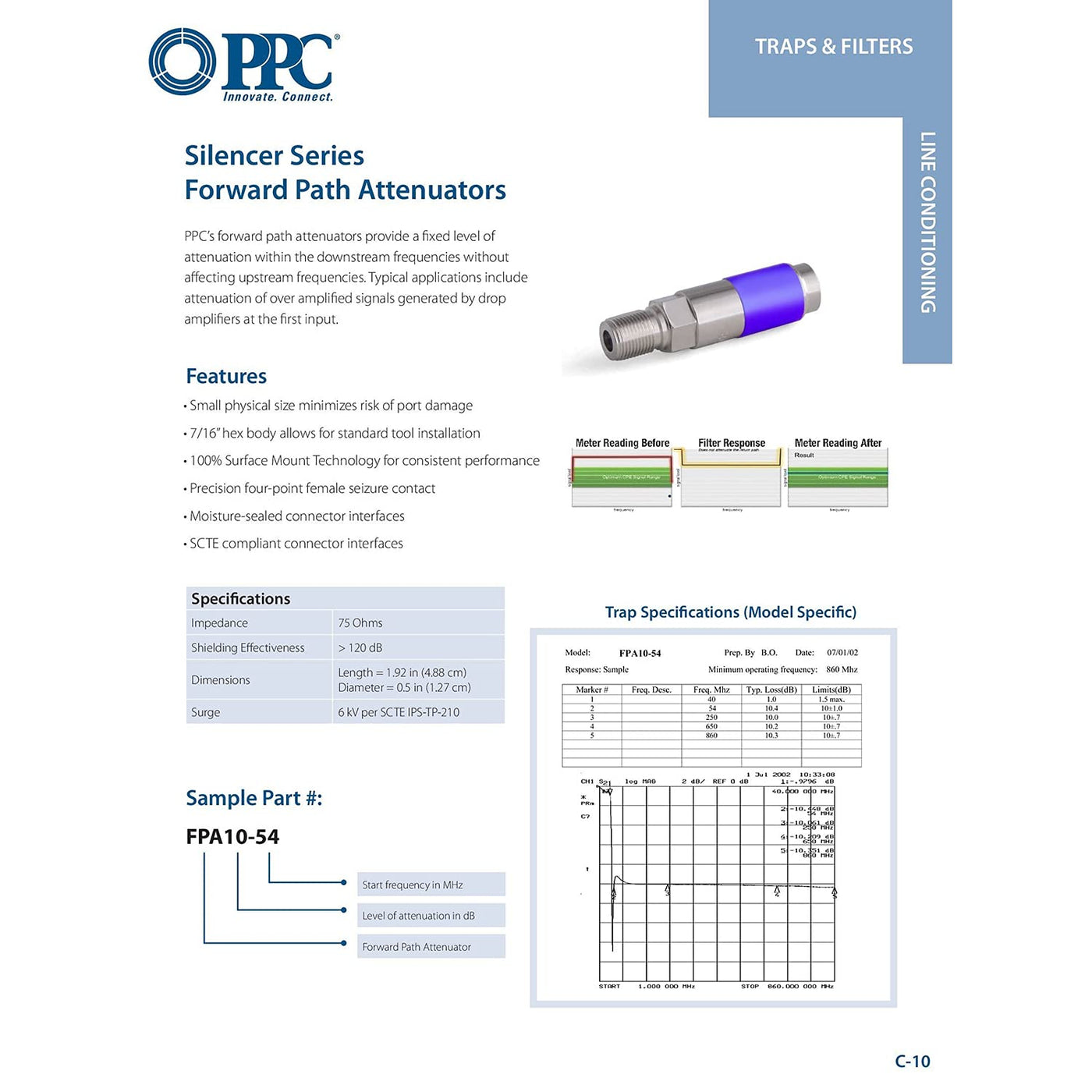 Ppc&Rsquo;S Filters Deliver Unsurpassed Mechanical And Electrical Performance To Meet The Challenging Requirements Of Today&Rsquo;S Digital Cable, Telephony, And High-Speed Data Systems. Ppc'S Forward Path Attenuators Provide A Fixed Level Of Attenuation Within The Downstream Frequencies Without Affecting Upstream Frequencies. Typical Applications Include Attenuation Of Over Amplified Signals Generated By Drop Amplifiers At The First Input. Easy To Read Numbered Labeling Comes Standard With Optional Color Coding Available. Hermetically Sealed To Prevent Moisture Migration.&Nbsp;Precision Four-Point Female Seizure Contact.&Nbsp;100% Surface Mount Technology For Consistent Performance.&Nbsp;