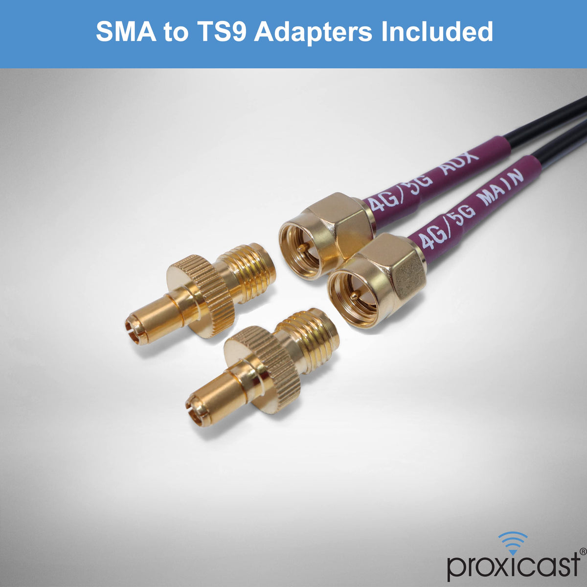 This Extremely Low Profile (< 0.6 Inches Tall) Fixed Mount Omni-Directional Antenna Provides Up To 2.5 Dbi Of Gain And Works On All 4G & 5G Cellular Frequency Bands Worldwide (All Cdma, Gsm, Wcdma/Umts And Lte Carriers).Includes 3M Adhesive Pad And Strong Internal Magnet For Flexible Mounting Options. Ip67 Waterproof.Similar In Gain To Rubber-Duck Style Antennas Often Included With Cellular Modems, This Antenna Is Designed For M2M Applications Such As Vending Machines, Meter Housings, Equipment Sheds, Or Other Locations Requiring An Inconspicuous Low-Profile External Antenna That Can Be Placed In A More Favorable Location. Can Also Be Vehicle Mounted For Buses, Vans, Trucks Or Other Mobile Installations. Dual Integrated Sma Male Plug Connectors Mate With Sma Female Jacks On Mimo Capable Modems, Routers, Etc. Includes 2 Sma To Ts9 Adapters For Ts9-Based Hotspots.This Antenna Performs Best When Installed On A Horizontal Metal Surface Of At Least 8X8 Inches.Key Specifications • Frequencies: 698~960 & 1710~6000 Mhz • Impedance: 50 Ohms • Peak Gain: 2.5 Dbi • Radiation Pattern: Omni • Polarization: Linear• Coax Cable: 6.5 Ft (2M) Low-Loss Lmr100• Connectors: Sma Male + Ts9 Adapters • Operating Temp: -40C To +85C • Radome Material: Abs• Ingress Protection: Ip67 • Height: 0.6 Inches / 15 Mm • Diameter: 3.15 Inches / 80 Mm Buy With Confidence: Usa-Based Proxicast Has Been Designing And Building Innovative Electronic Products Since 2000 -- Includes 12 Month Warranty & Us-Based Technical Support.