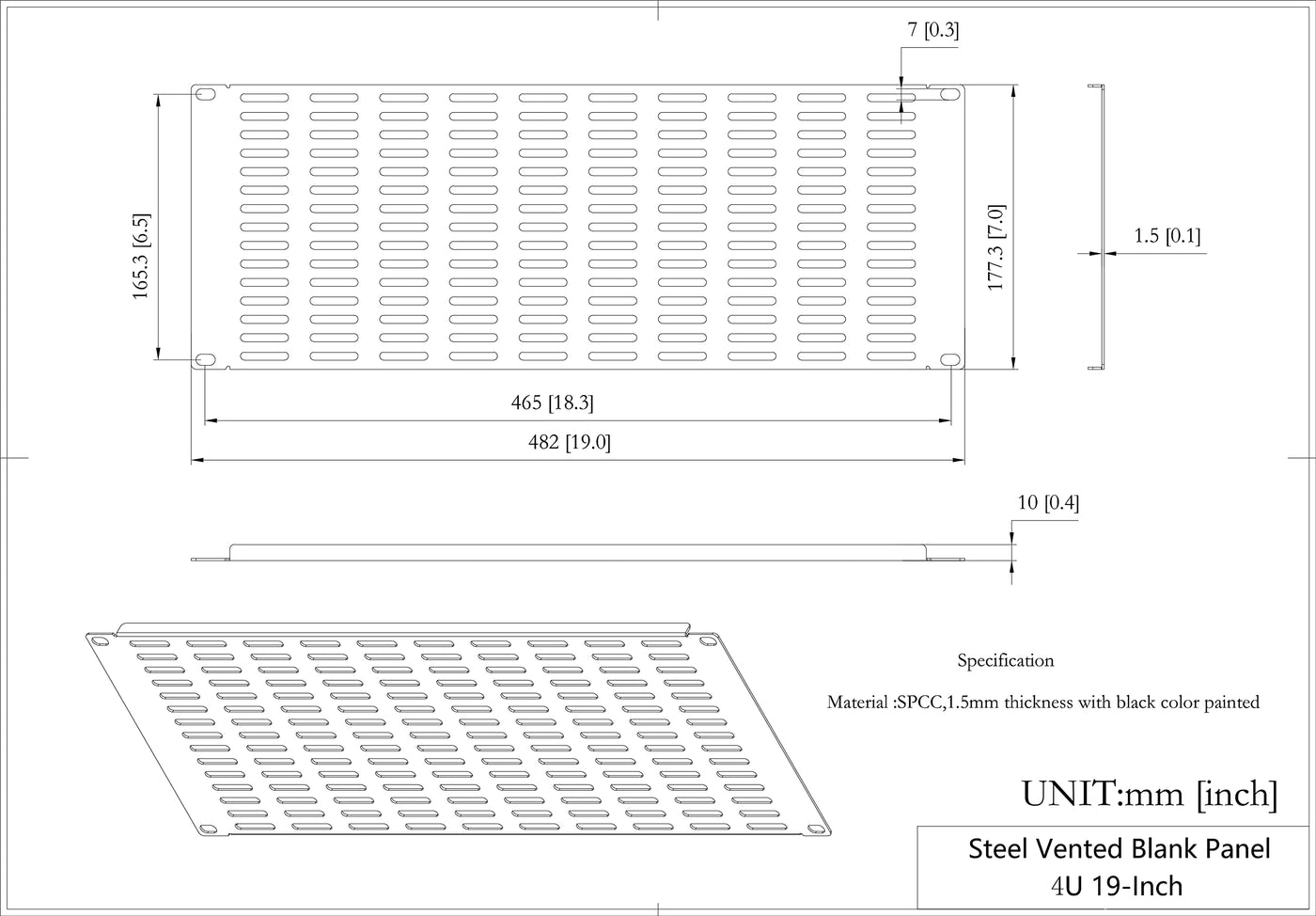 Q: What is the size of the QiaoYoubang 4U Vented Blank Panel?A: The QiaoYoubang 4U Vented Blank Panel measures 19 inches in width and is designed to fit a 4U space in standard 19-inch server racks.