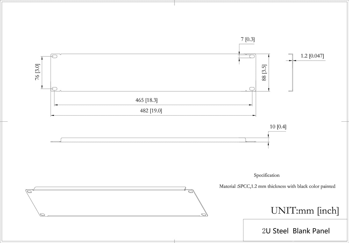 Q: What material is the 2U Blank Panel made from?A: This panel is made of high-quality cold rolled steel with a powder coating finish, which enhances durability and provides a sleek look.