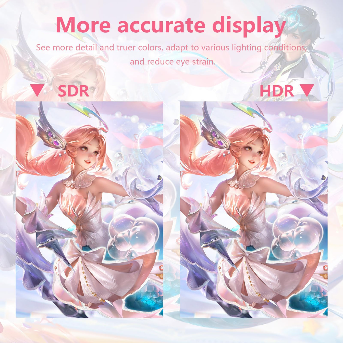 Q: What is the resolution of the Raywego Pink 27 inch Curved Monitor?A: The monitor offers a QHD resolution of 2560x1440, delivering stunning and lifelike images with impeccable detail, making it ideal for both gaming and movie watching.