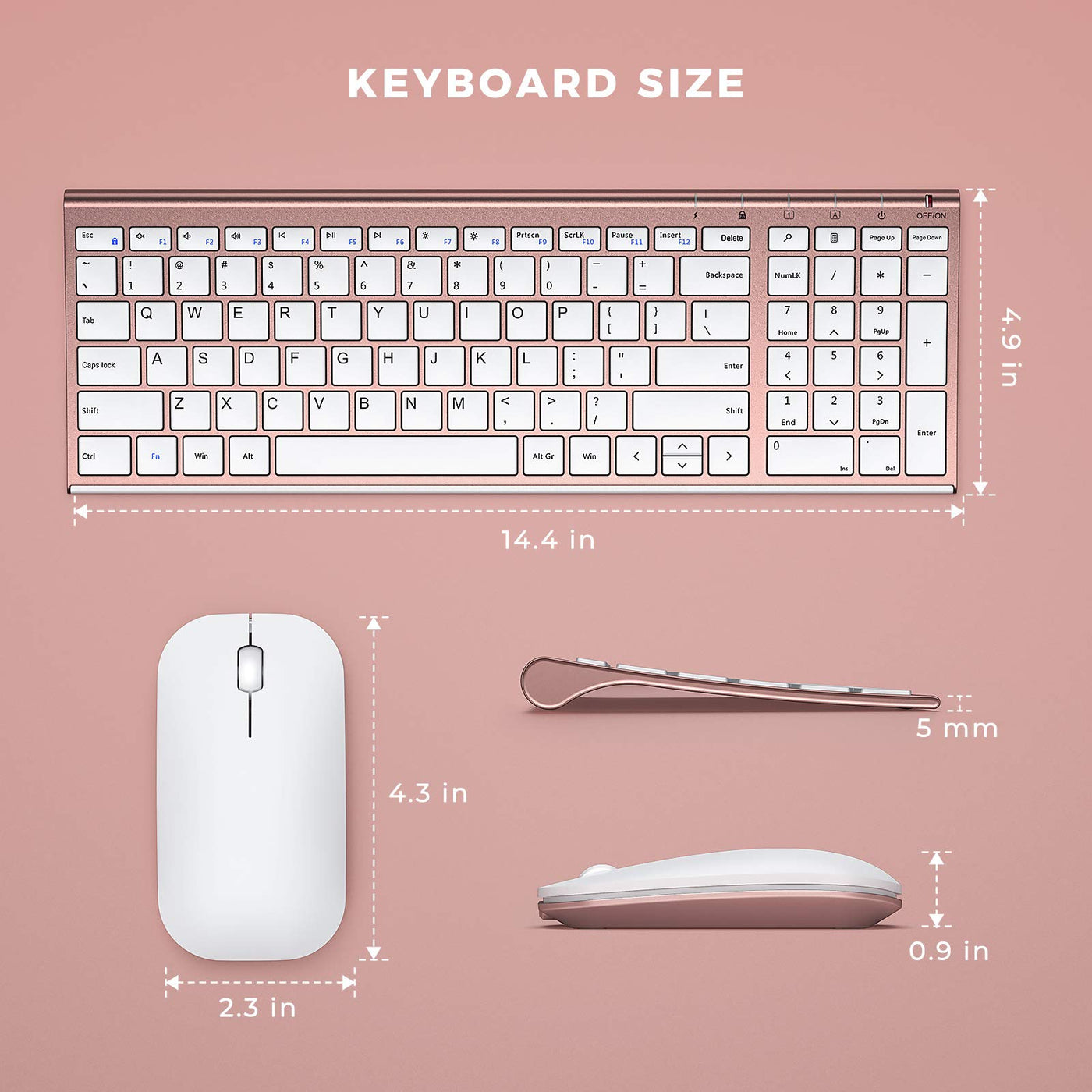 Rose Gold Wireless Keyboard Mouse, Seenda Slim Low Profile Keyboard And Mouse Set With Silent Keys Portable Size For Windows 7/8/10/11 Pc Laptop Computer