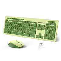 Seenda Wireless Keyboard And Mouse Combo, 2.4Ghz Cordless Quiet Keyboard Mouse With Usb Receiver, Full Size Cute Green Combo, Compatible For Windows Laptop Computer Desktop Pc, Light And Dark Green