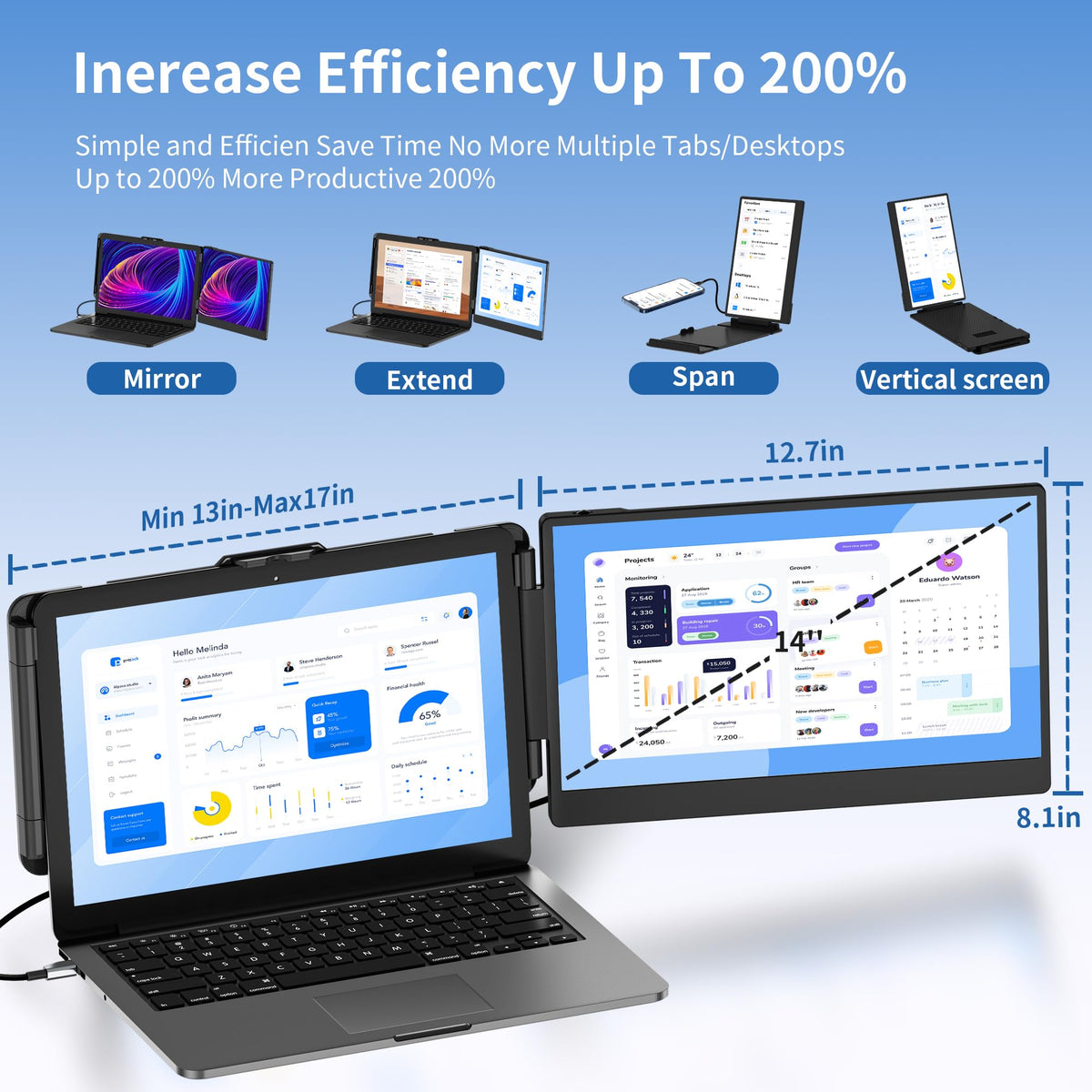Sharanix 14'' Laptop Screen Extender Basic Parameters: Weight:1.62Kg Contrast:1000:1 Screen Scale:16:9 Screen Size:14 Inches Color Fields:45% Panel Type:Ips Wide Viewing Angle Size:353*207*38.7Mm Average Brightness:300Cd/M Refresh Rate:60Hz Type-C Input:5V-20V/5A Max Resolution:1920*1080 P Type-C Output:5V-20V/4.25A Max Speaker:2 Port:Type-Cx3 What'S In The Box *Screen Extender *Type C To Type C Cable X 1 *Usb-A To Type C Cable X 1 *Hdmi To Type C Cable X 1 *Manual X 1 *Quick Gui