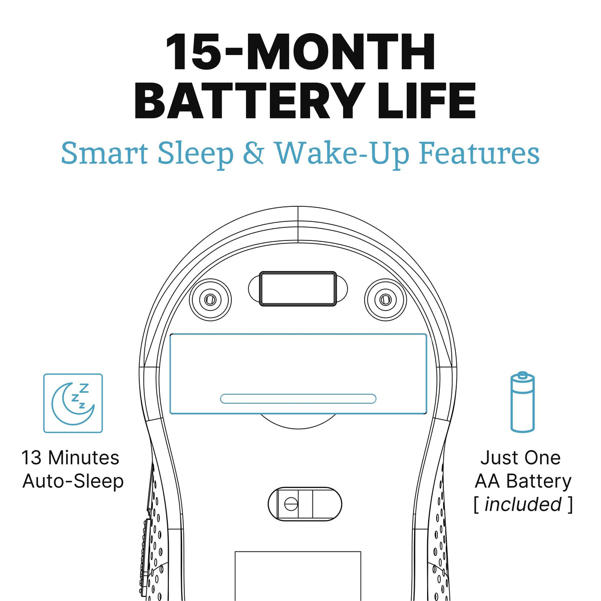 Q: What is the battery life of the SHHHMOUSE Silent Mouse?A: The SHHHMOUSE Silent Mouse boasts an impressive battery life of up to 18 months, allowing for extended use without the hassle of frequent battery replacements.