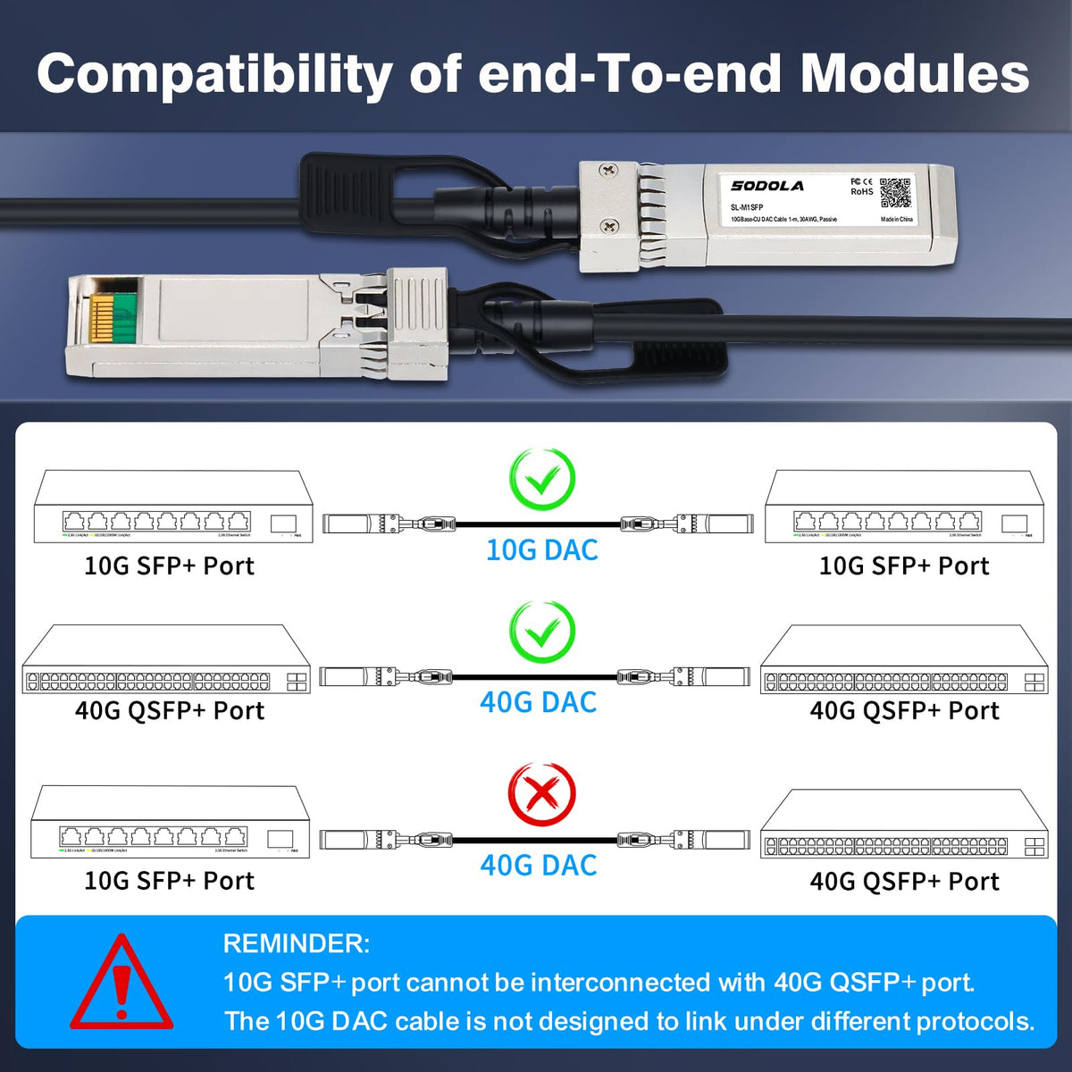 Q: What devices is the Sodola SFP+ DAC compatible with?A: The Sodola SFP+ DAC cable is compatible with a wide range of devices, including switches, routers, network cards, firewalls, transceivers, servers, and NAS systems from brands like Cisco, Meraki, Ubiquiti, MikroTik, and more.