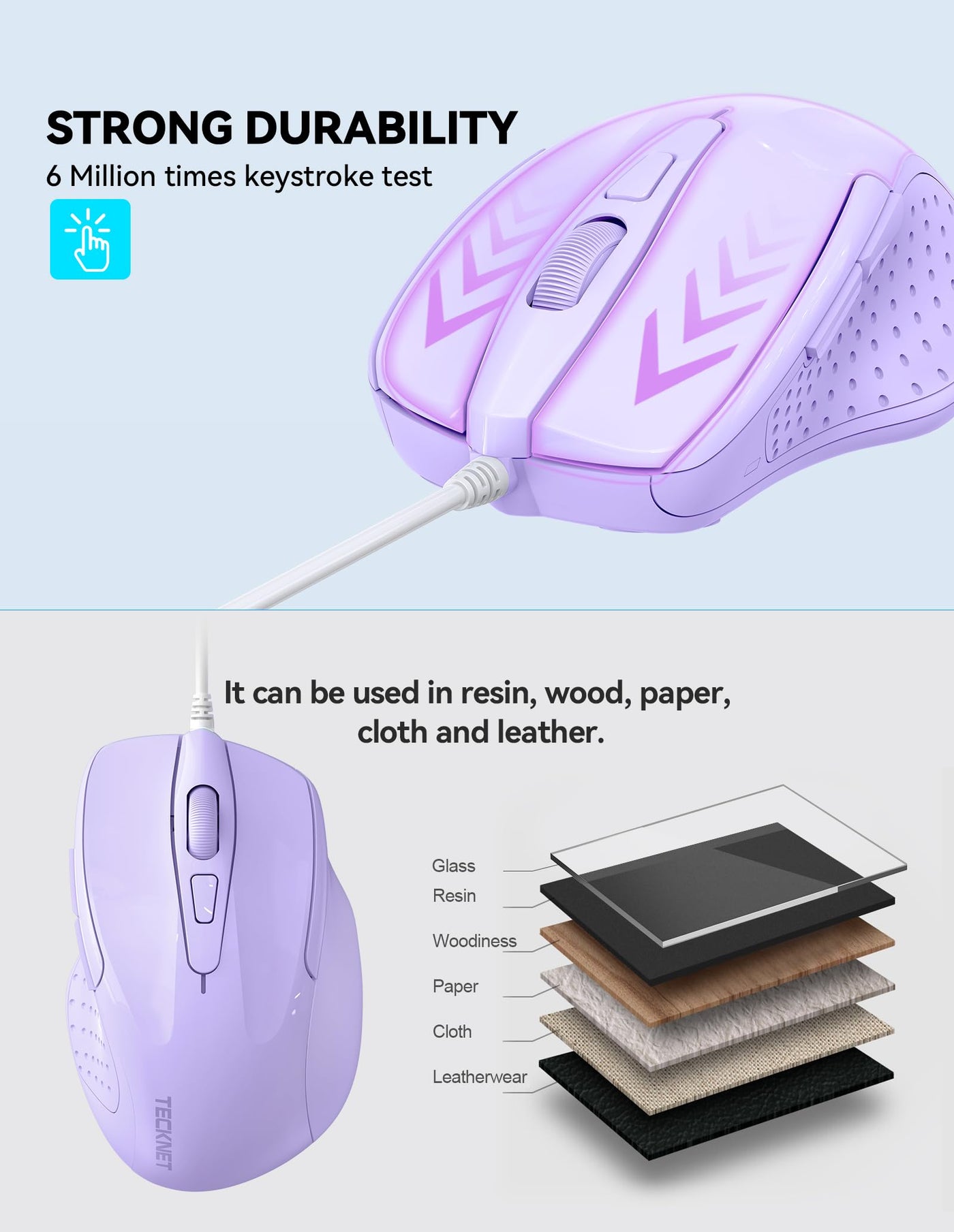 Tecknet Usb Wired Mouse, 6 Button Corded Mouse With 4 Adjustable Dpi, Optical Computer Mouse With Ergonomic Design And 5Ft Cord For Laptop, Chromebook, Pc, Desktop, Mac, Notebook Lt.Purple