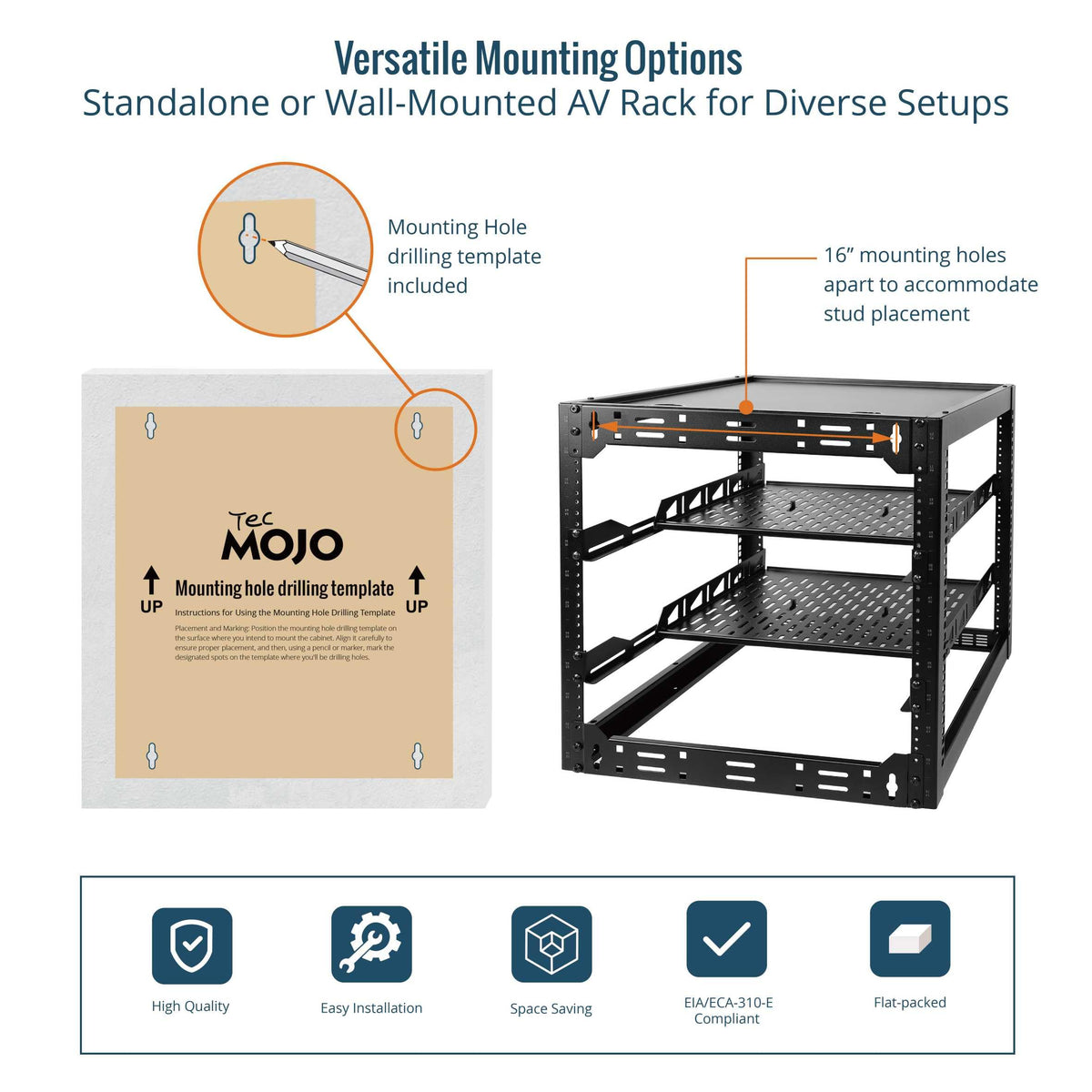 Tecmojo12U Open Frame Network Rack For Servers & Av Gear,Server Rack Floor Standing Or Wall Mounted,With 2 Pcs 1U Server Rack Sh