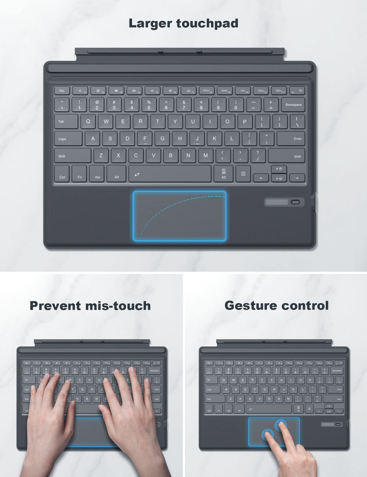 Tomsenn Surface Pro 7 Keyboard, Bluetooth 5.1, 7 Color Backlit Touchpad, Compatible With Surface Pro 7/7+/6/5/4/3