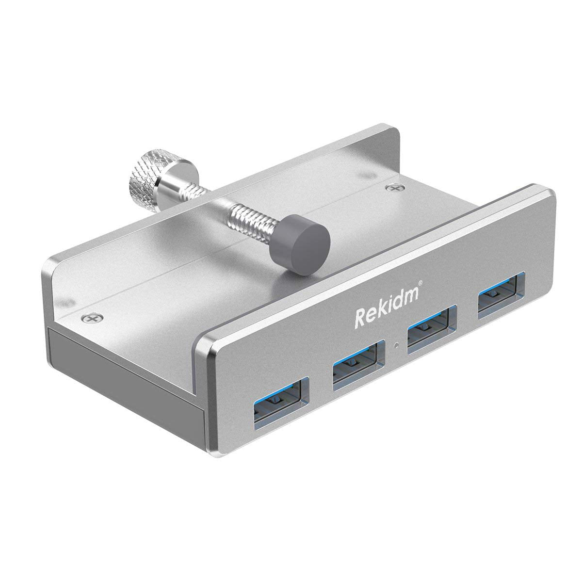 Usb Hub 3.0 Rekidm 4 Port Aluminum Desk Usb Hub 3.0 Clamp Design For Desktop, Computer, Pc, Table Edge With Durable Adjustable