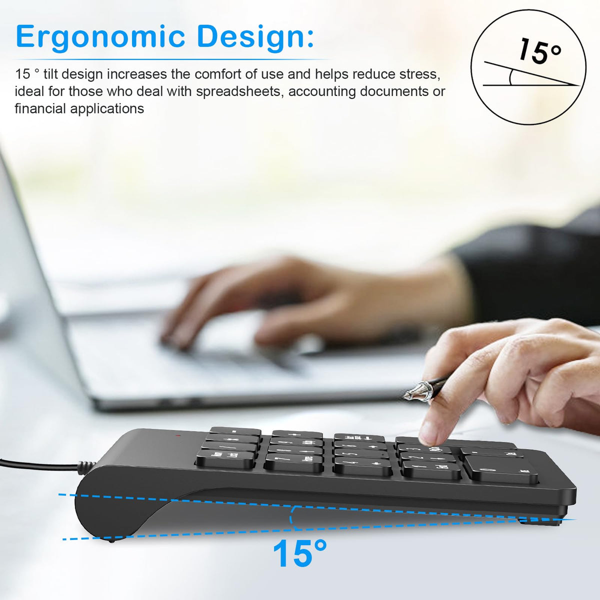 Firstly, The Design Of The Keypad Is Compact And Lightweight, Making It Highly Suitable For Business Professionals And Students Who Need To Carry It Frequently. It Connects Easily To Various Devices Via A Usb Interface, Requiring No Additional Drivers For A Plug-And-Play Experience, And Is Compatible With Multiple Operating Systems Including Windows, Macos, And Linux. Secondly, The Keypad Is Specifically Designed For Data Entry, Featuring Responsive Keycaps And An Optimized Key Layout, Significantly Enhancing Input Efficiency And Accuracy. This Is Particularly Important For Professionals Like Accountants, Financial Analysts, And Data Managers Who Require Extensive Numeric Input. Additionally, The Keypad Excels In Durability. Made With High-Quality Materials, It Withstands Prolonged Use, Ensuring Stability And A Long Lifespan. Its Ergonomic Design Guarantees Comfort During Extended Use, And The Soft Key Touch With Low Noise Design Makes It Suitable For Use In Quiet Office Environments. Finally, The Keypad Is Equipped With Various Additional Function Keys, Such As Backspace, Arrow Keys, And Shortcut Keys, Which Further Enhance Work Efficiency. Coupled With Its Modern Design And Stylish Appearance, It Is Not Only A Practical Work Tool But Also A Decorative Item On The Desk. In Summary, This Wired Numeric Keypad Is A Highly Efficient Work Tool That Perfectly Combines Portability, Efficiency, Durability, And Comfort, Making It Extremely Suitable For Professionals Who Need To Perform Extensive Data Entry.