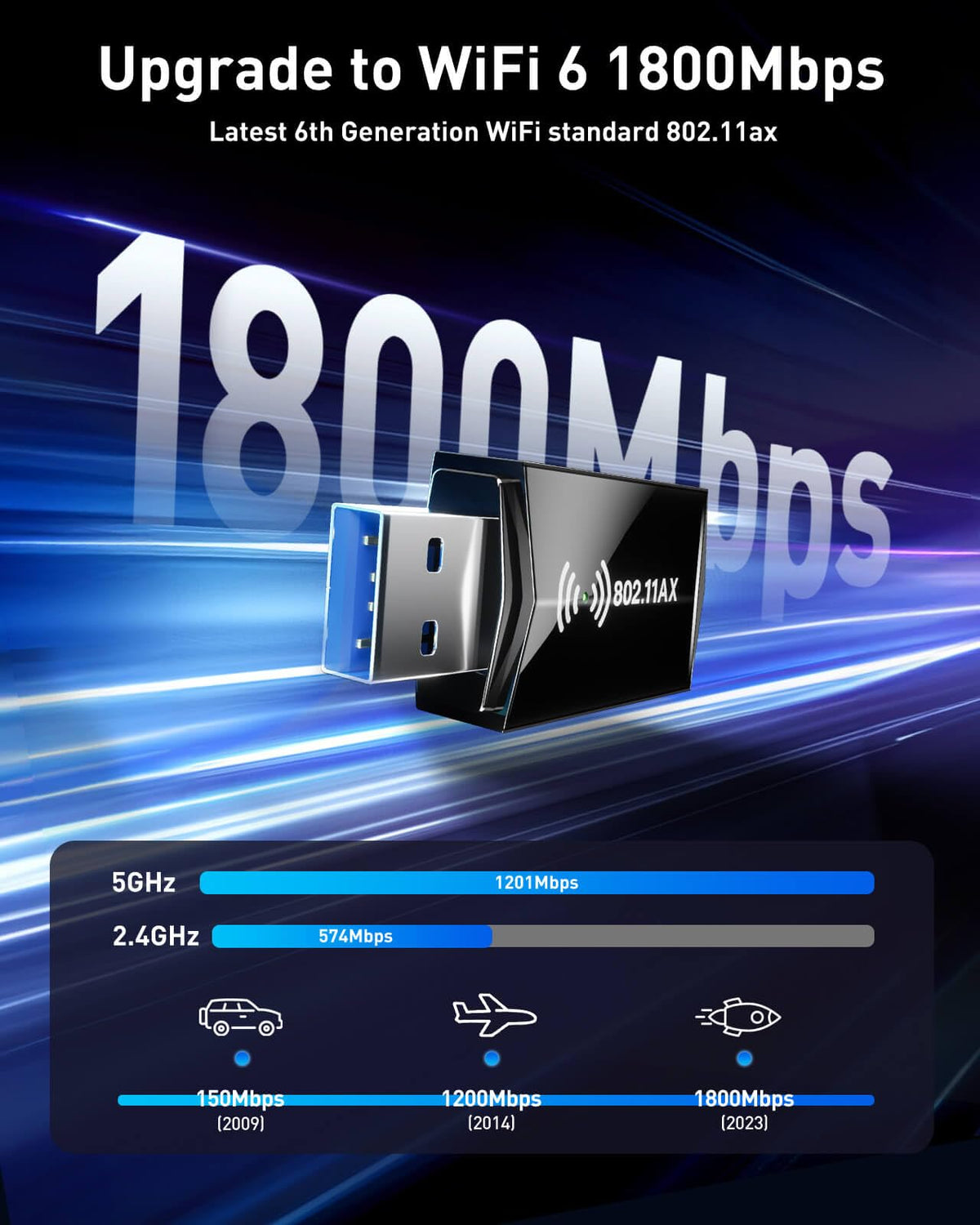 Usb Wifi Adapter For Desktop Pc Ax1800 Wifi 6 Adapter 5Ghz 2.4Ghz Usb 3.0 Wifi Adapter Wireless Network Adapter For Desktop Co